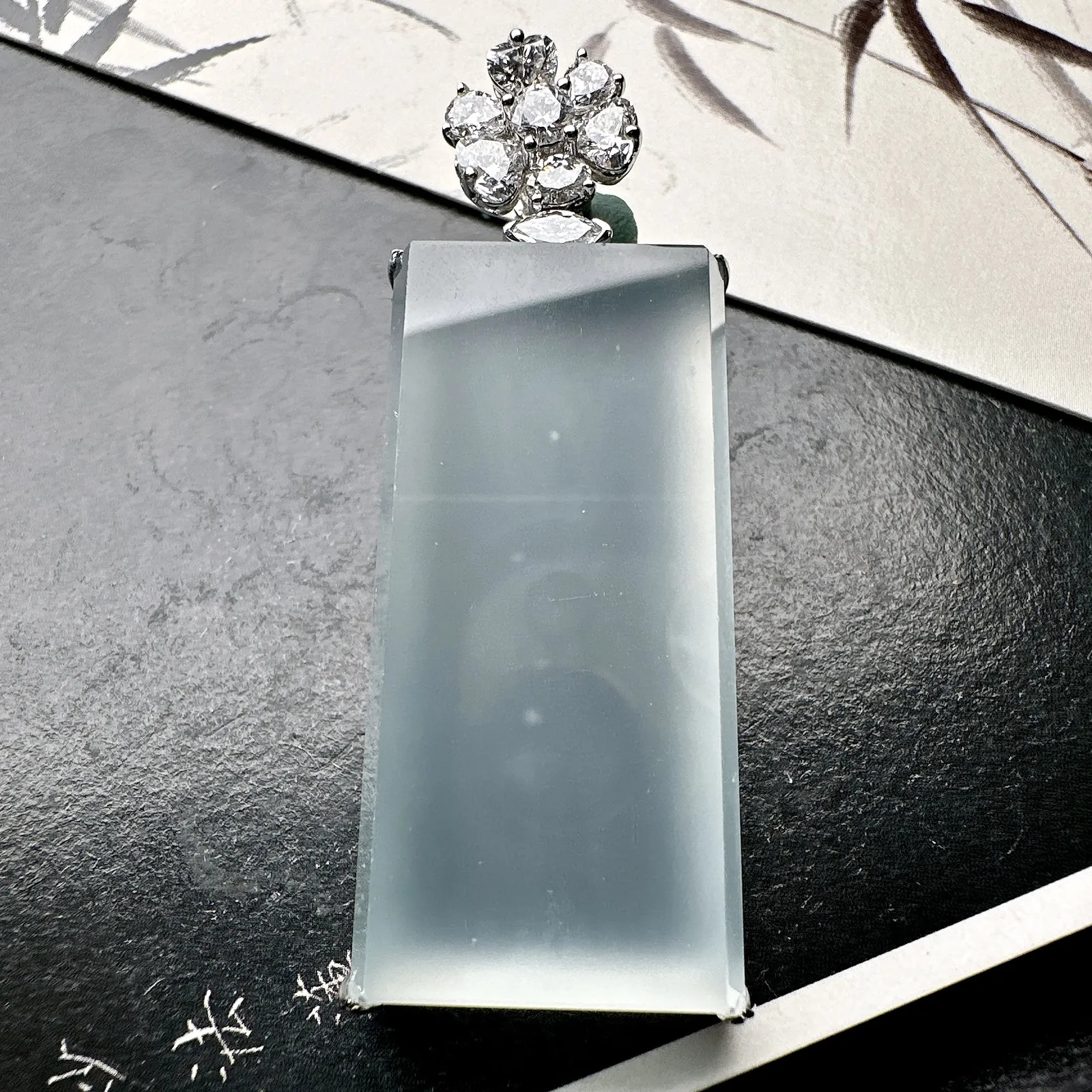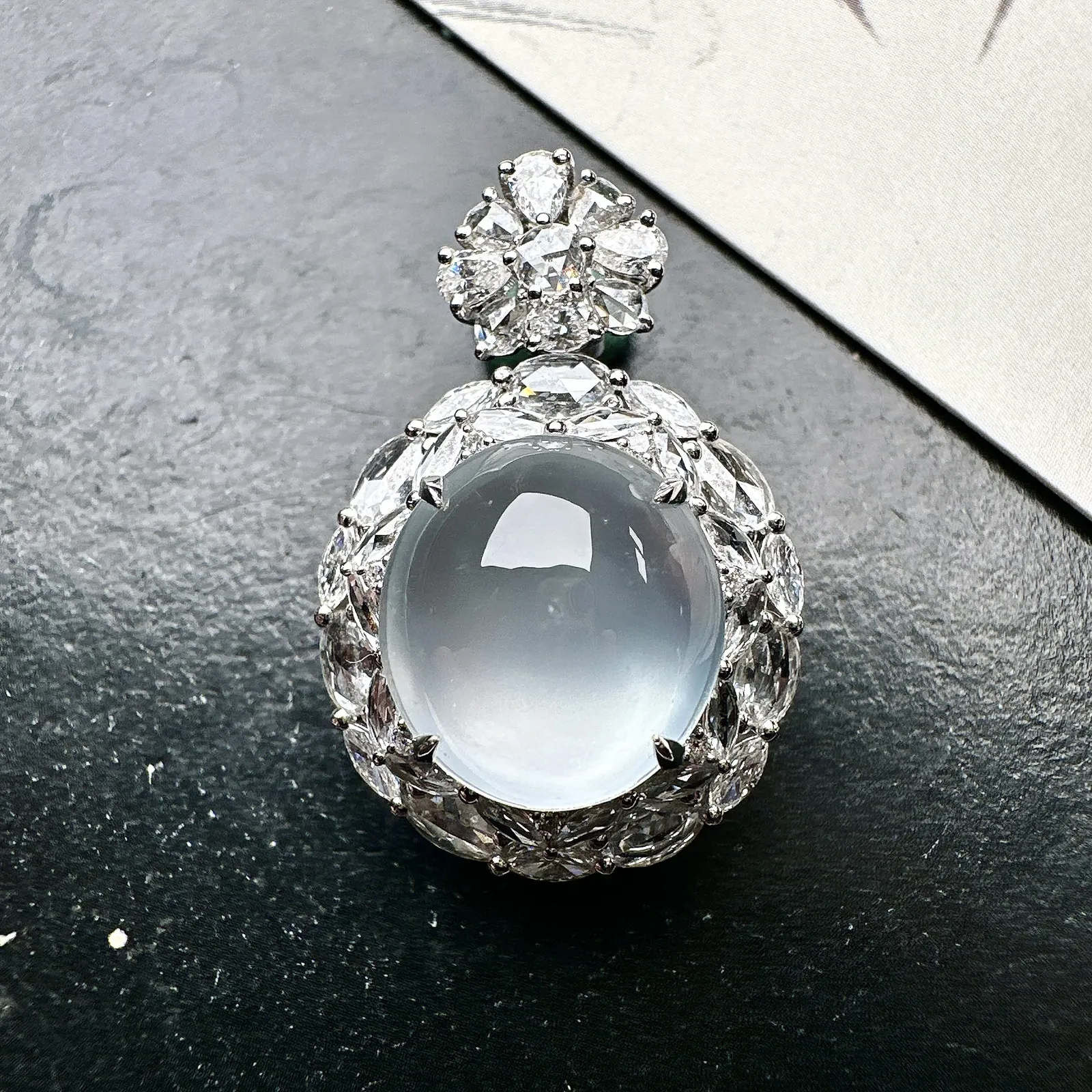 【冰种蛋面吊坠】种地上乘,冰感十足,通透起光,饱满圆润,18k金钻镶嵌,裸石尺寸12.6*11.8*