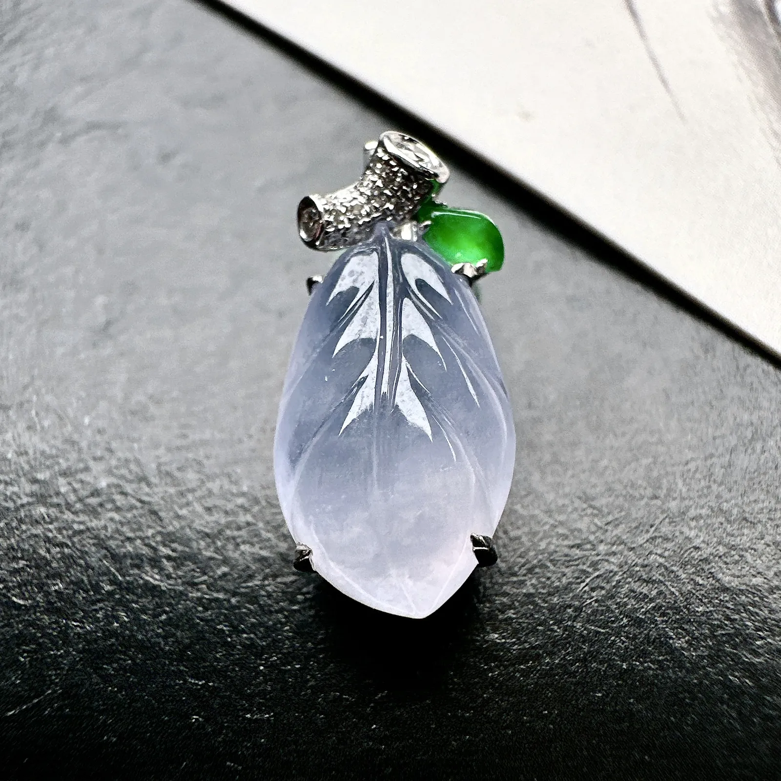 【冰种淡紫叶子】金枝玉叶,质地细腻,种水色俱全,冰透闪亮,通透感饱满度很好,18k金钻镶嵌,裸石尺寸