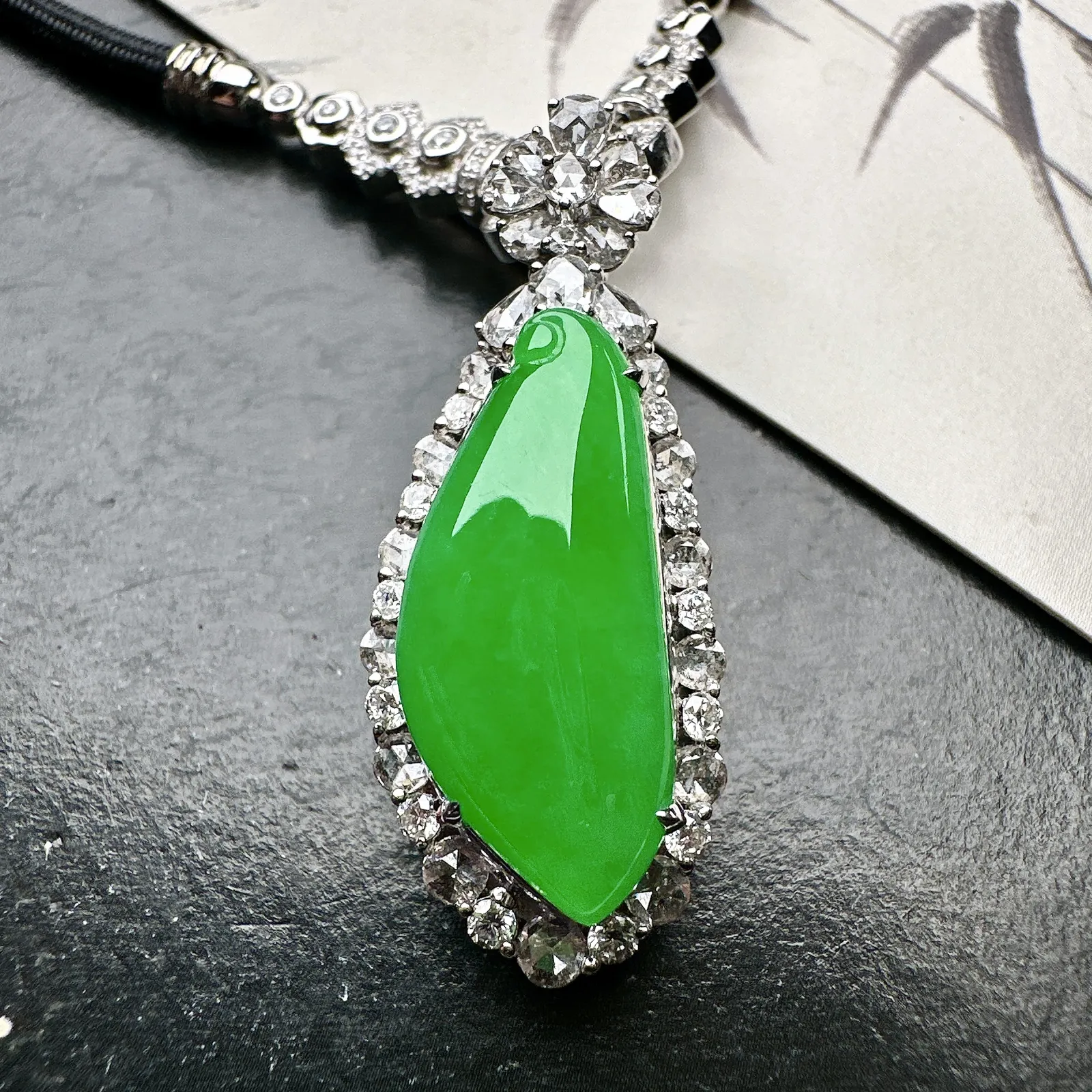 【冰种满绿福瓜】质地冰润细腻,种老起光,收藏品质,18K金钻镶嵌,裸石尺寸22.1*9.8*3.7毫