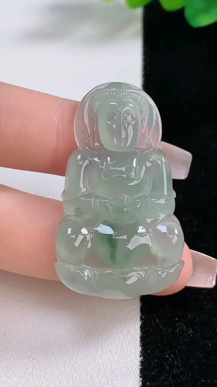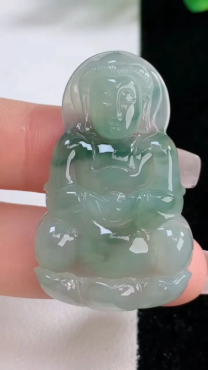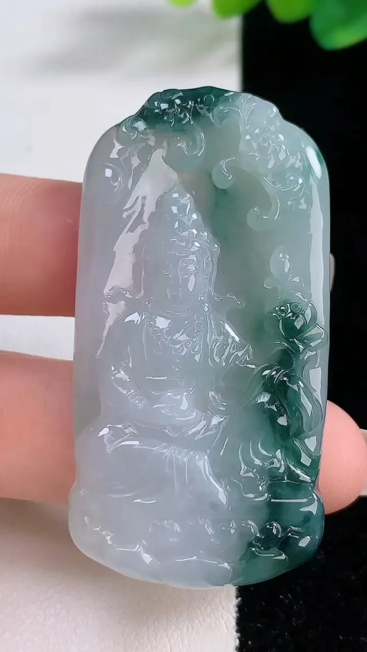 天然A货翡翠观音菩萨吊坠,尺寸42.3-25.1-4.3,重:7.62g 12月11日