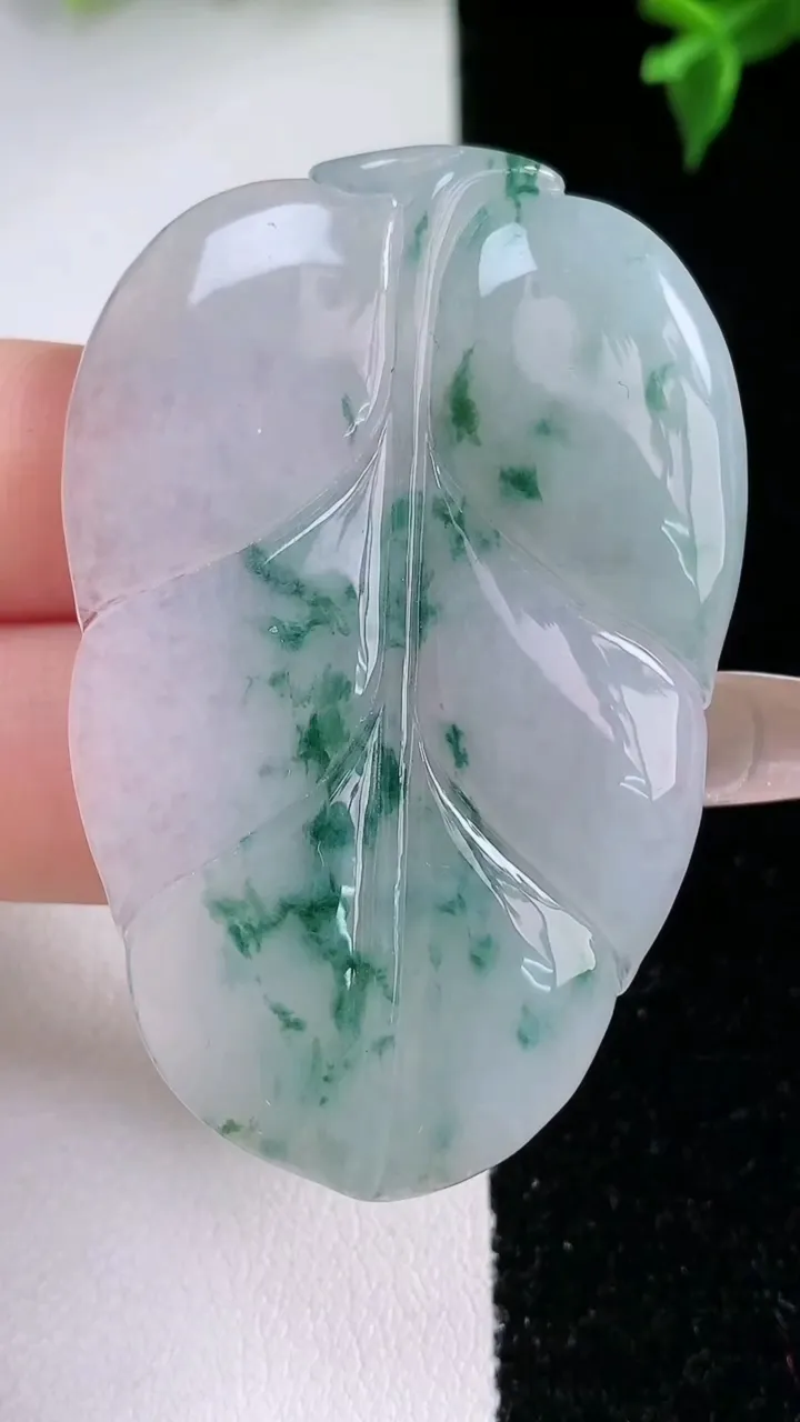 天然A货翡翠飘花金枝玉叶 叶子吊坠,尺寸53-34.6-4,重量:15.36g 1月22日