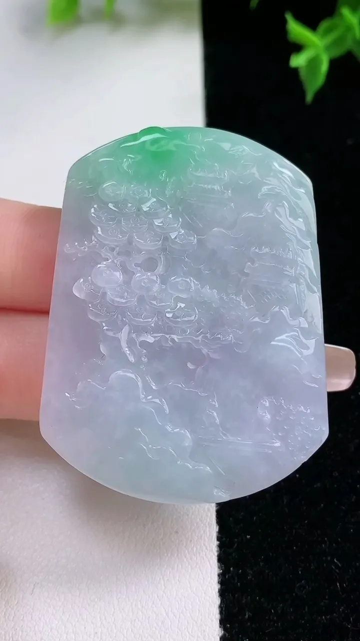 天然A货翡翠山水牌吊坠,尺寸50-37.8-5.8,重量:27.85g 1月22日
