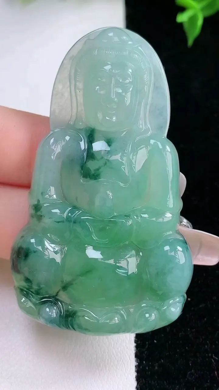 天然A货翡翠观音菩萨…