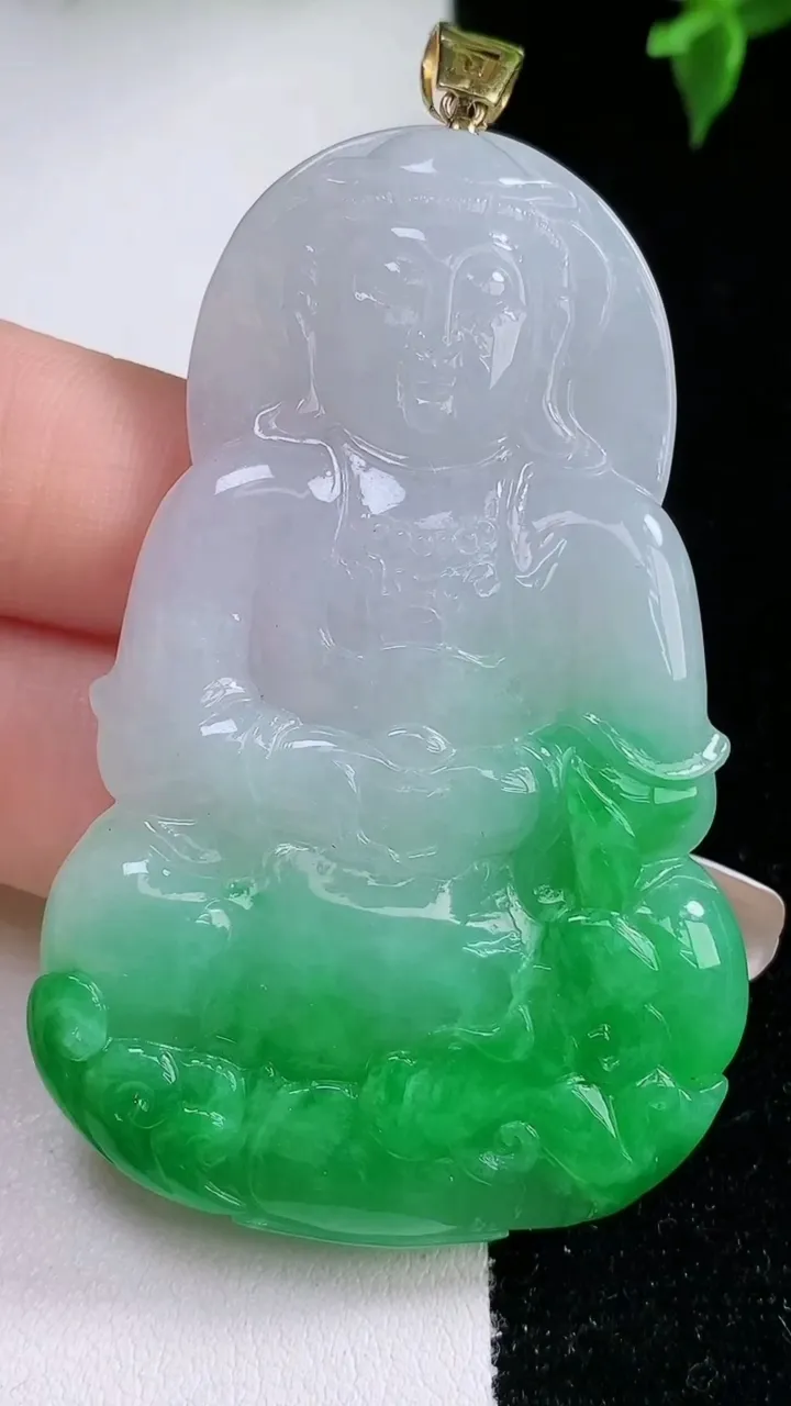天然A货翡翠观音菩萨吊坠,尺寸61.3-38.6-5.4,重量:26.22g 1月22日