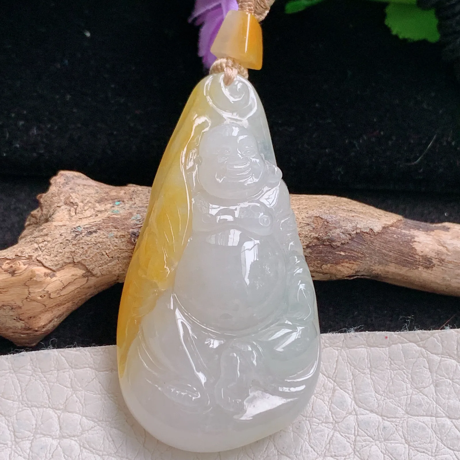 csy实拍48.8*26*9.2缅甸翡翠精雕冰双彩逍遥佛 佛公玉吊坠 玉挂坠