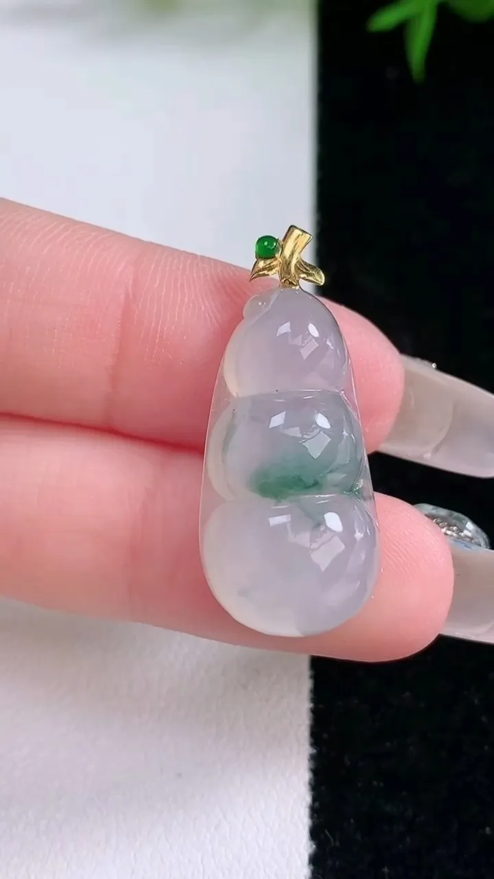 天然A货翡翠种福豆吊坠,尺寸25-13.4-6.2,重量:3.86g 3月4日