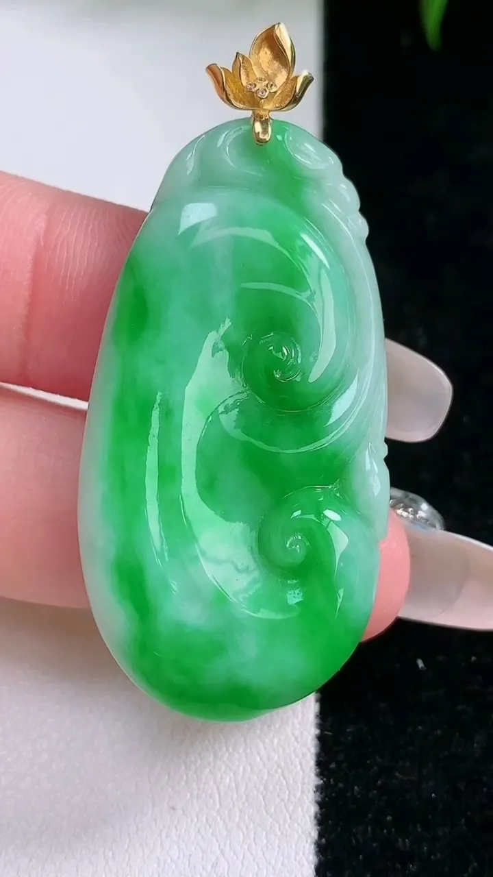 天然A货翡翠如意吊坠,尺寸42.5-21.2-4.5,重量:9.37g 3月4日