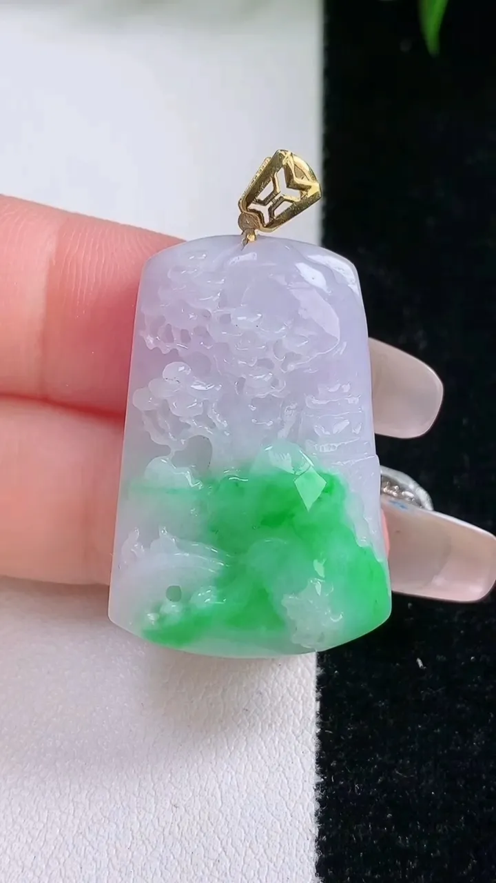 天然A货翡翠山水牌吊坠,尺寸31.8-21.2-6.6,重量:9.85g 3月4日