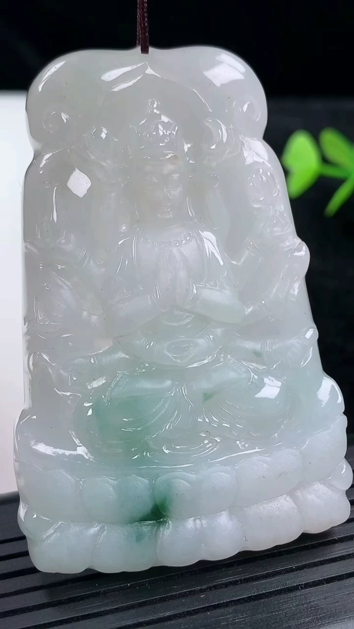天然A货翡翠大势至菩萨吊坠尺寸64.1-42.2-5.1重量:27.75g 3月14日