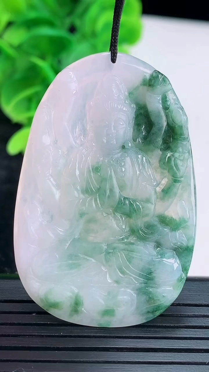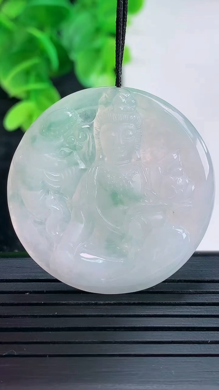 天然A货翡翠飘花普贤菩萨吊坠尺寸35.7-4.2重量:9.93g 4月16日
