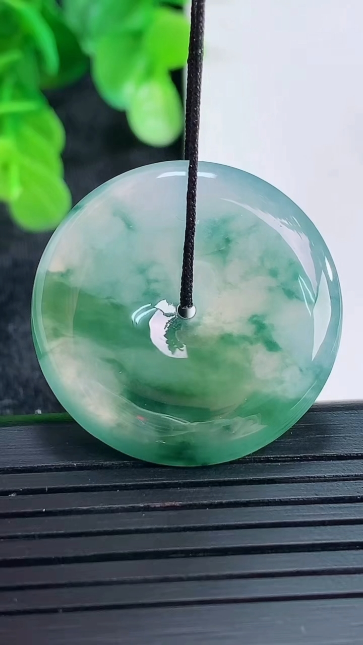 天然A货翡翠飘花平安扣吊坠尺寸29.2-5.1重量:9.49g 4月16日