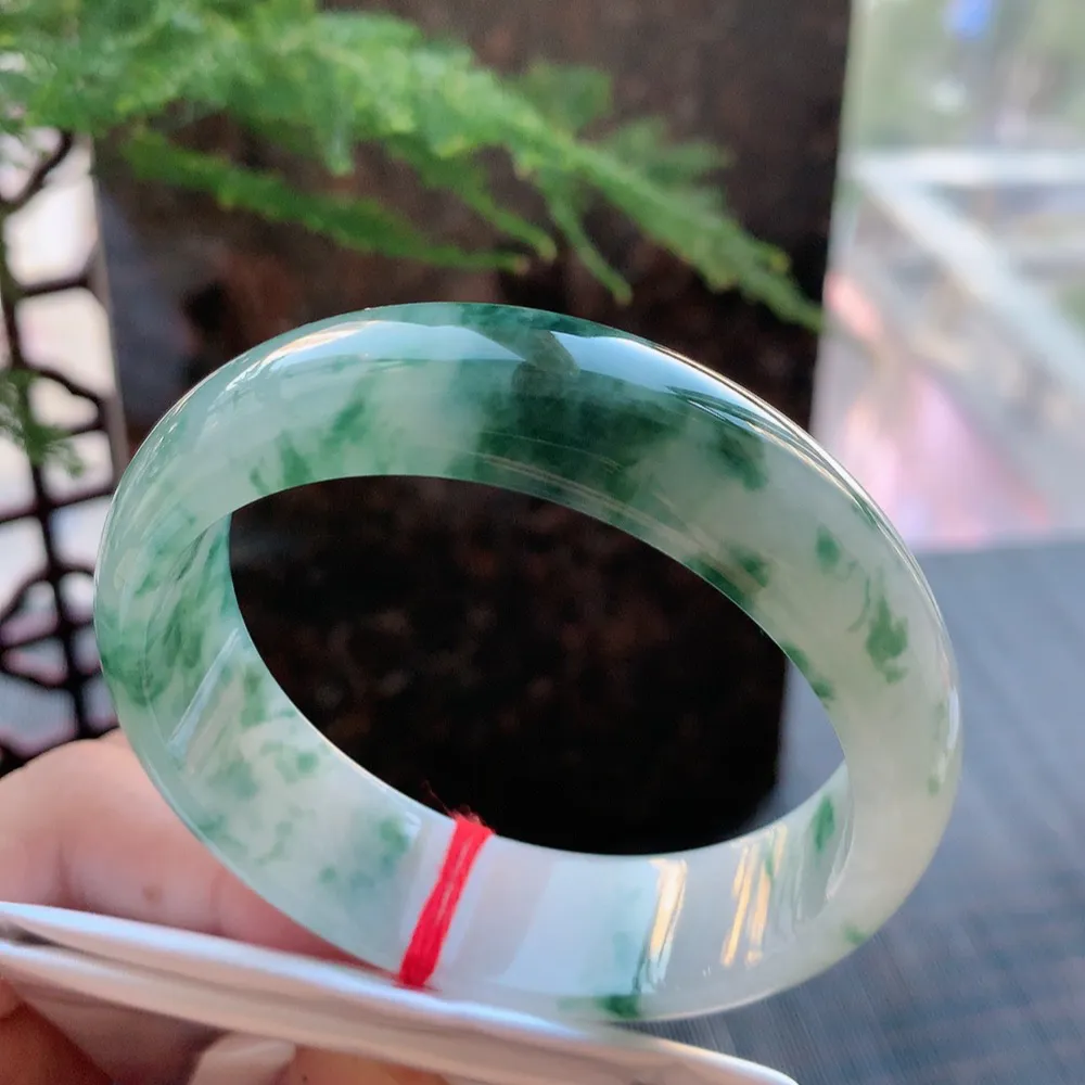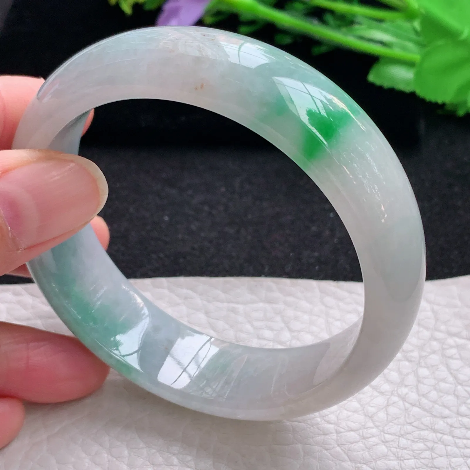 hy自然光56.5*13.9*6.6平安镯 缅甸翡翠a货玉手镯冰透宽边玉手环