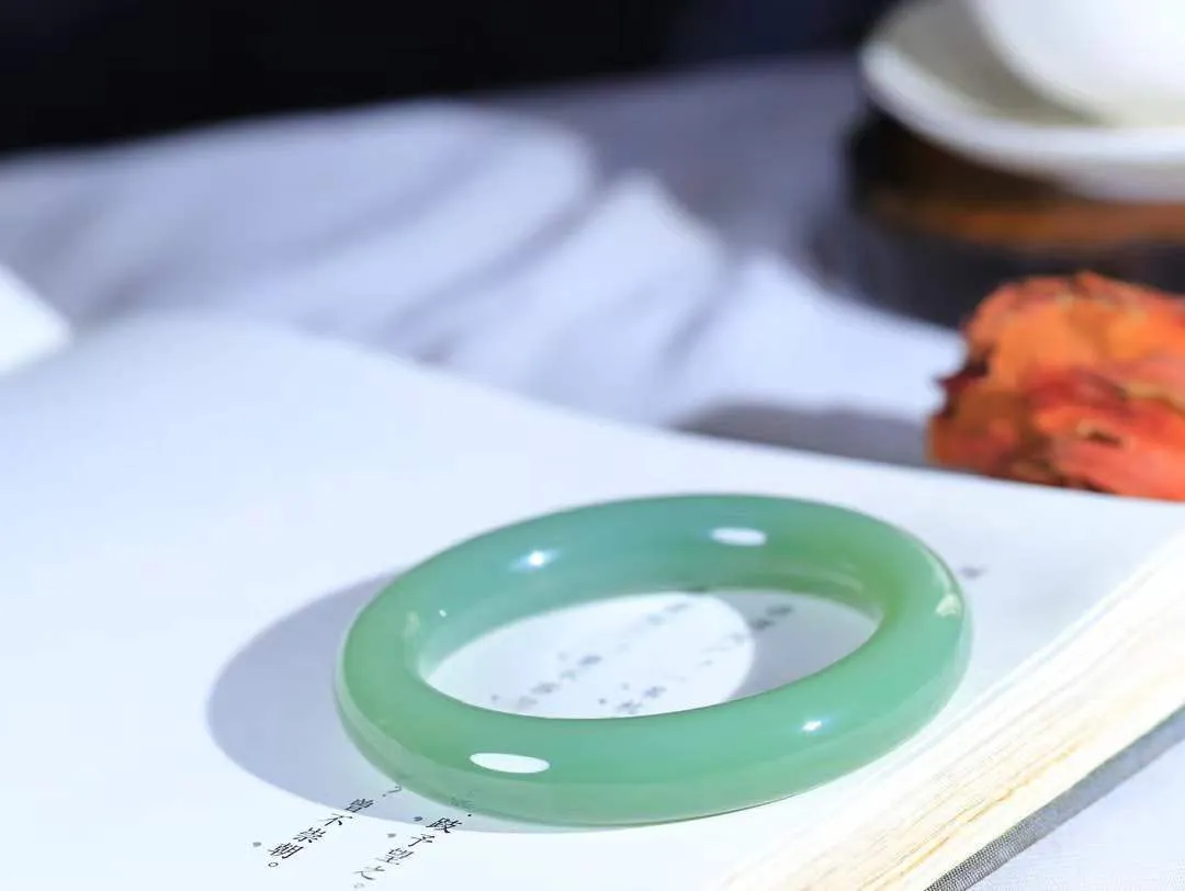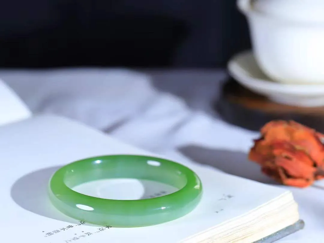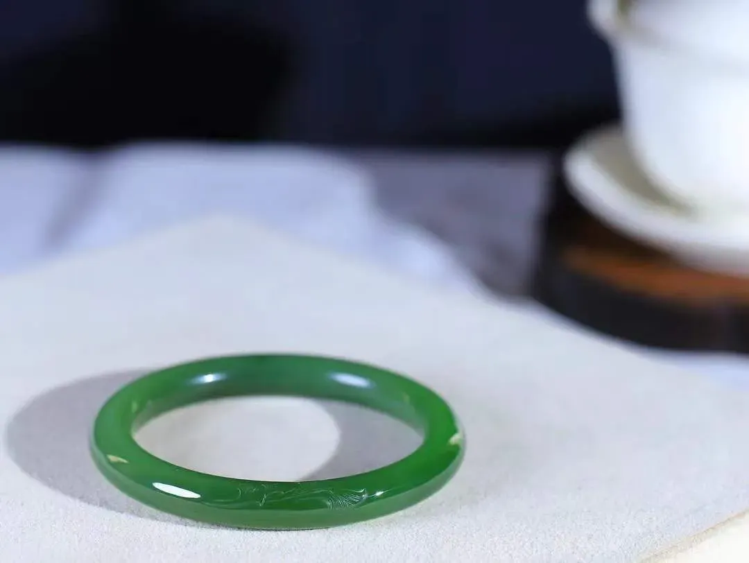 【悠悠芳华.镯】 典藏级臻品和田玉碧玉手镯 玉质温润 青葱岁月,尽收腕中,婉转流畅,凝岁月悠长