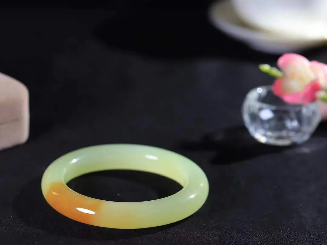 (三生有幸.手镯) 精品和田玉碧玉银杏叶手镯,玉质温润.油性上佳。三生有幸遇到你,始于初见,止