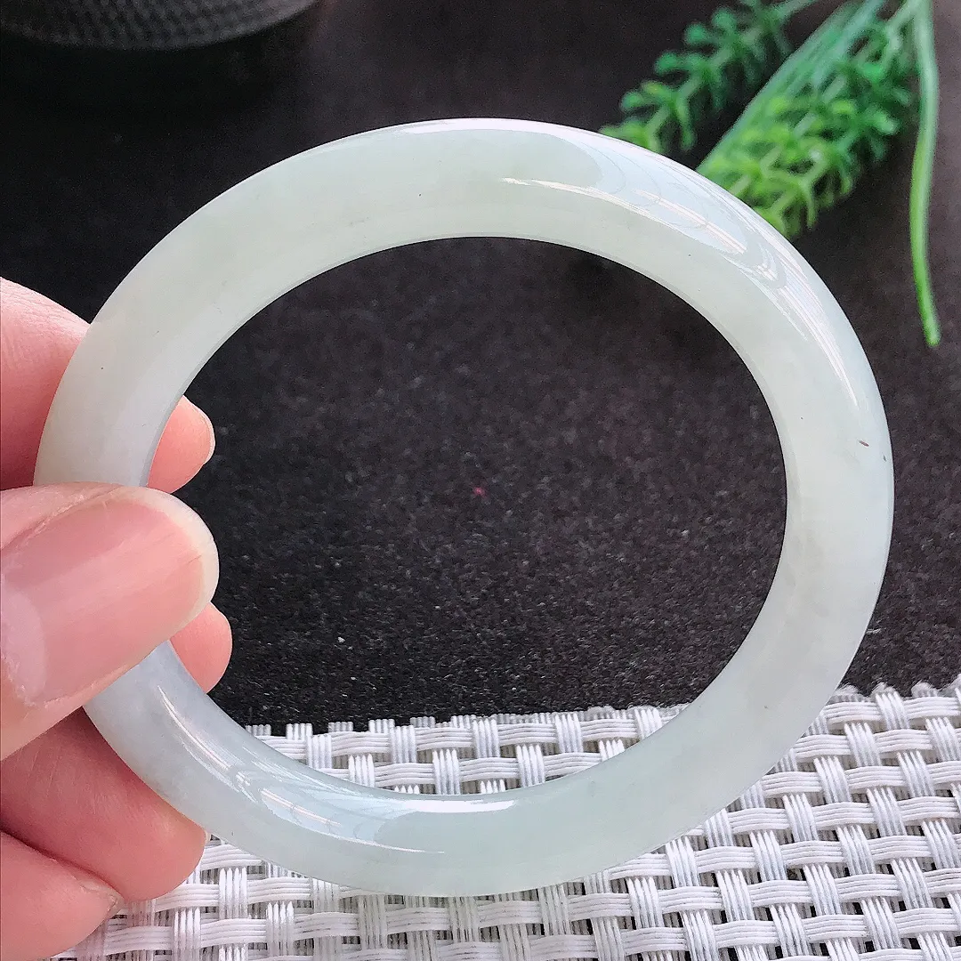 天然A货翡翠54/8.8老坑冰润起胶白净圆条手镯玉镯