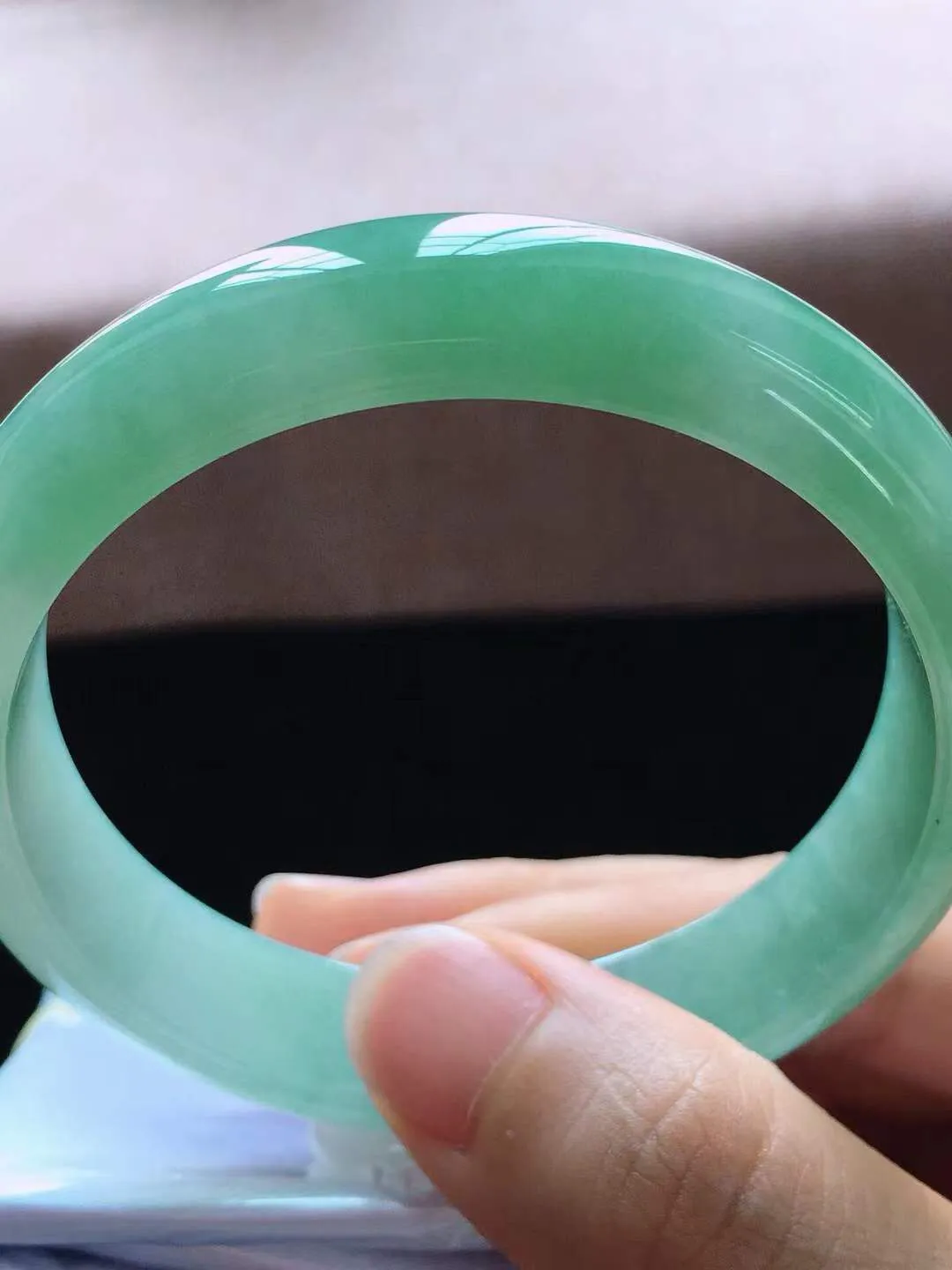 【翡翠名称】老种冰飘绿56.5正圈口手镯 【翡翠尺寸】56.5*13.6*7.2mm适合55.5-5