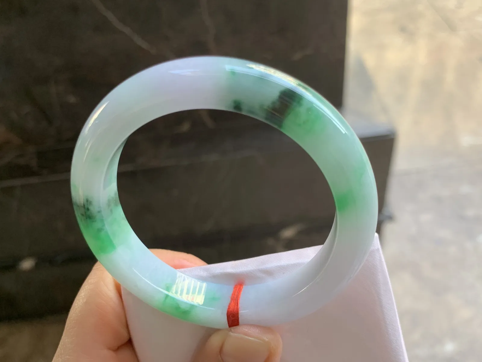 实拍A货翡翠53.5/48.5/9.8/6.3老坑冰胶特色飘花贵妃手镯宽边翡翠玉镯女款