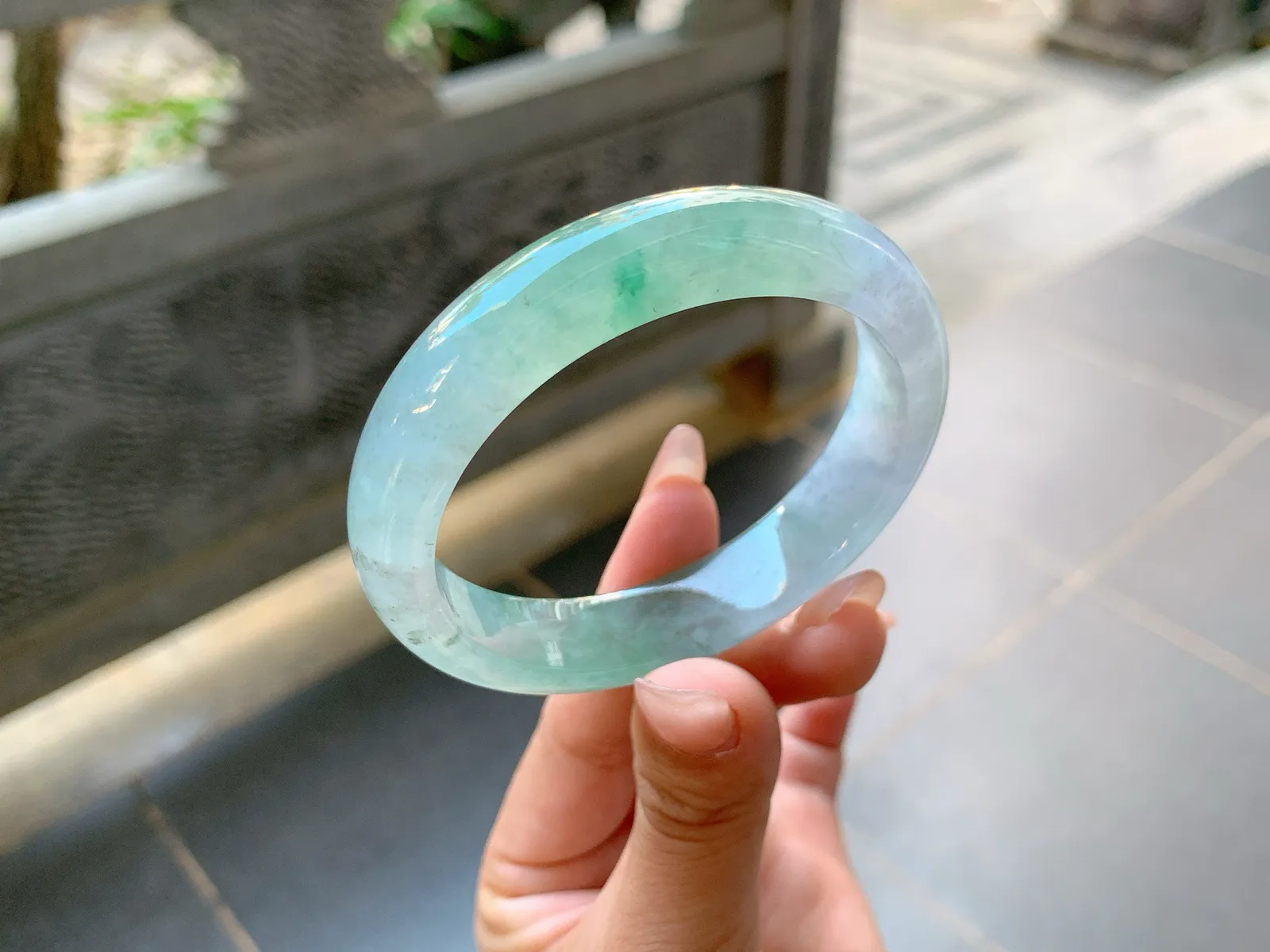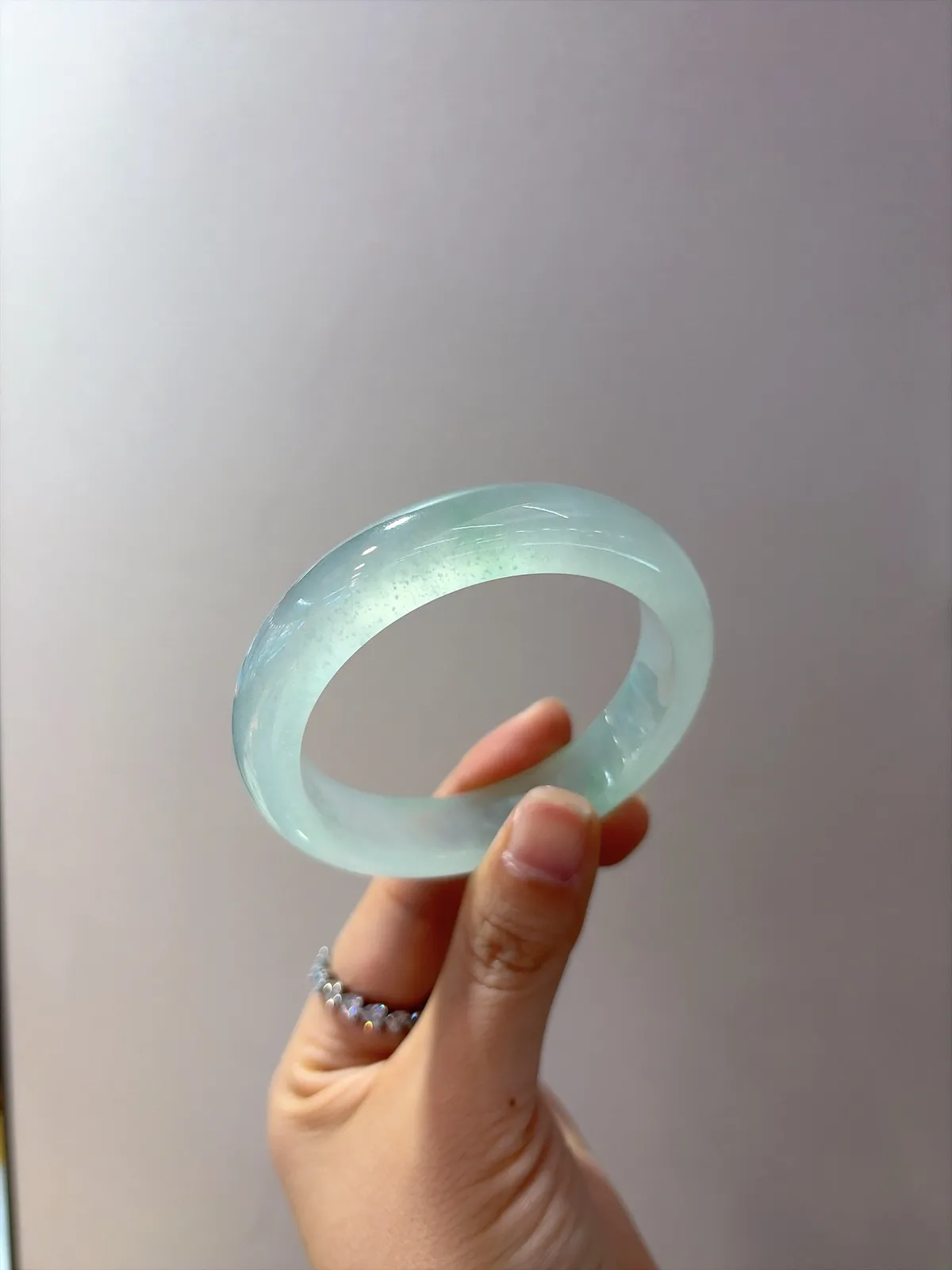 ️|57圈口 白冰飘绿花,整体透亮细腻,端庄大气,花色轻盈飘逸,