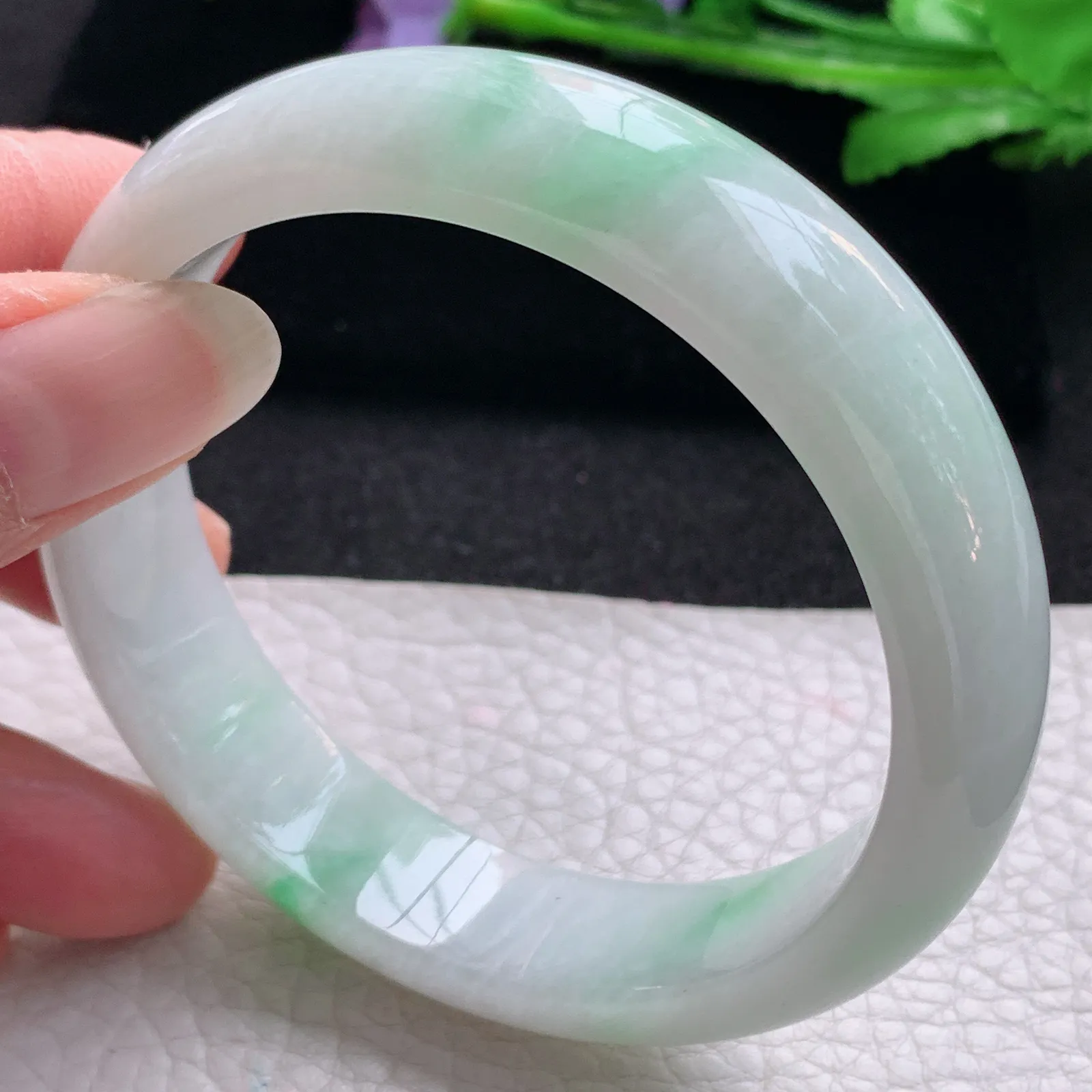 A货天然翡翠冰糯种浅绿手镯58.4圈重量76.67 2月3日