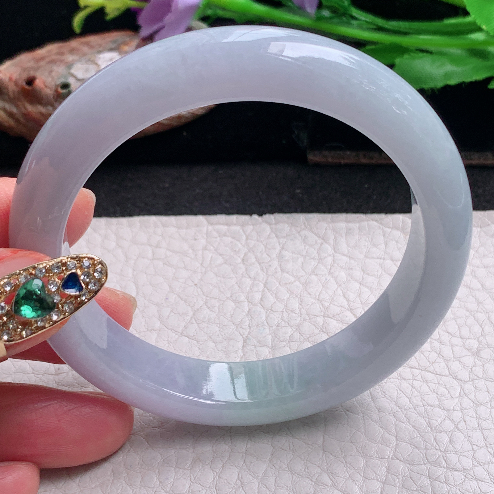 ee实拍57*12.5*9平安镯 天然缅甸翡翠a货手镯淡紫宽边正圈玉镯子