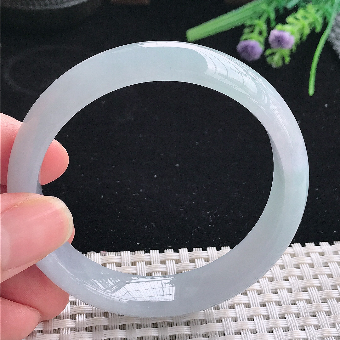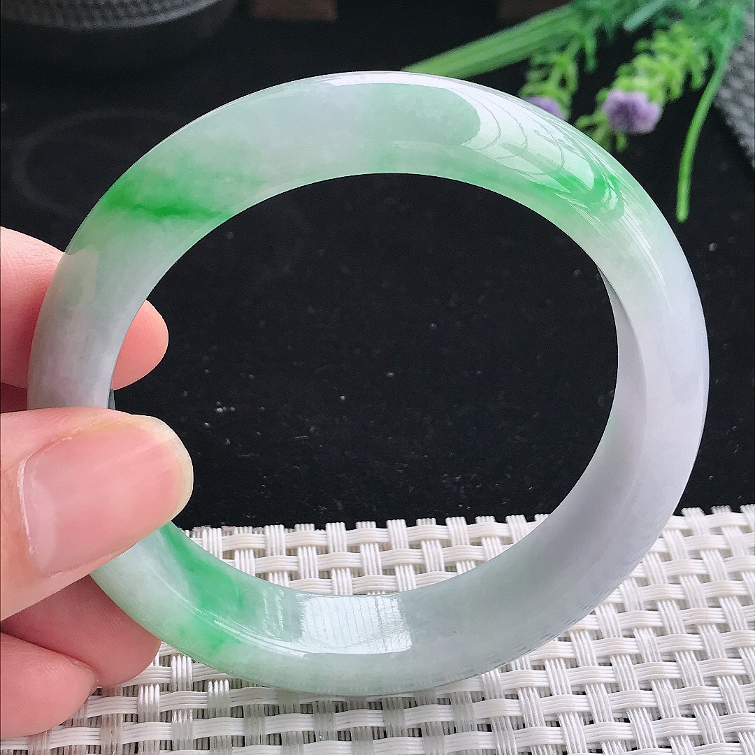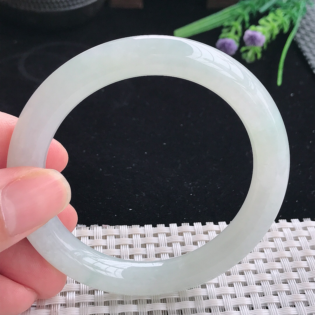 实拍A货翡翠61.5/12.8/8.7大圈口老坑秀气冰润飘花手镯宽边玉镯平安镯