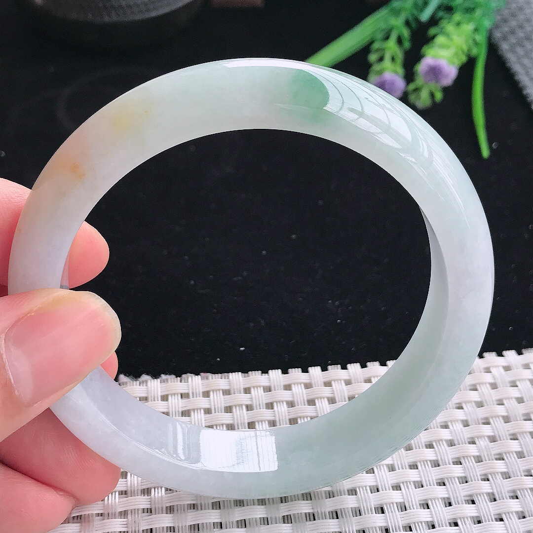A货天然翡翠冰糯种黄飘花手镯59圈重量50.66 4月11日