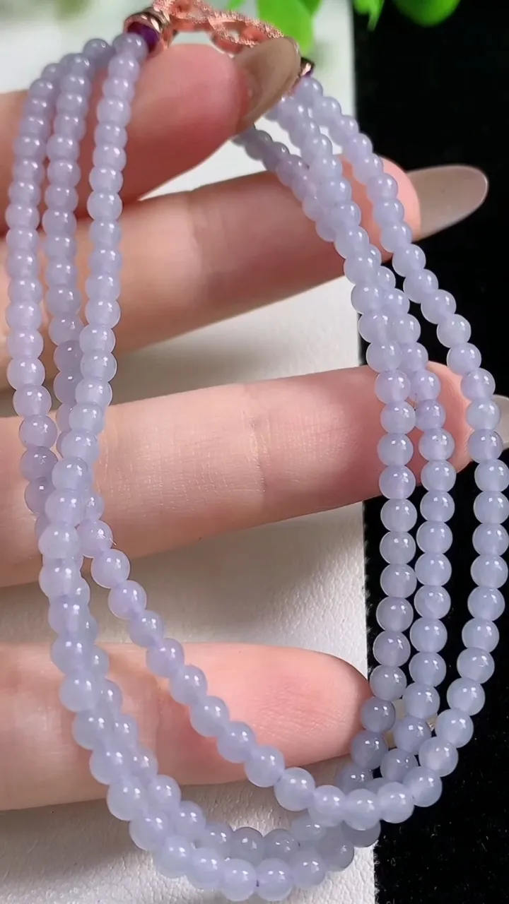 天然A货翡翠种紫罗兰小米圆珠项链192颗,尺寸3.2,重量:12.82g11月5日 工厂直销收藏佳品