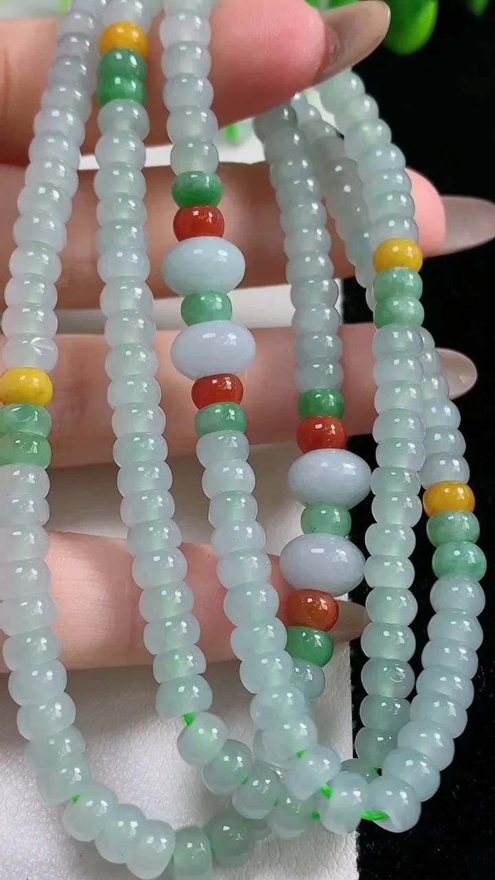 天然A货翡翠算盘珠项链192颗,尺寸5.3-3,重量:42.00g11月5日 工厂直销收藏佳品,种好
