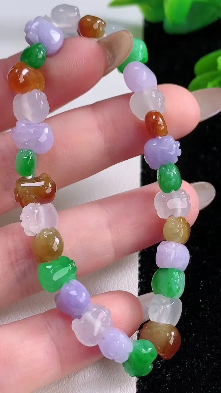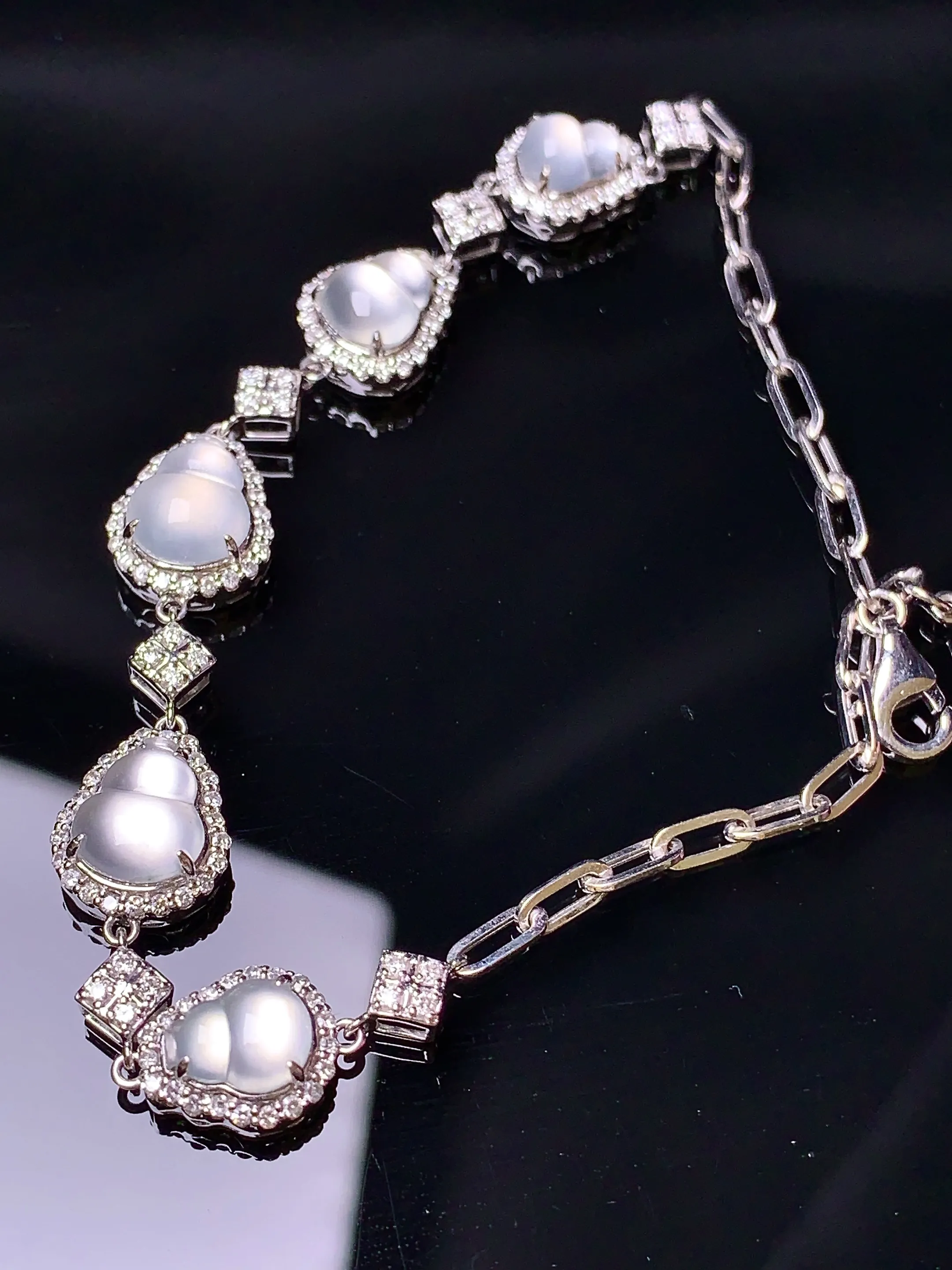 18k金钻镶嵌冰种葫芦手链 玉质细腻 色泽清新艳丽 整体尺寸87.3*8.8*6