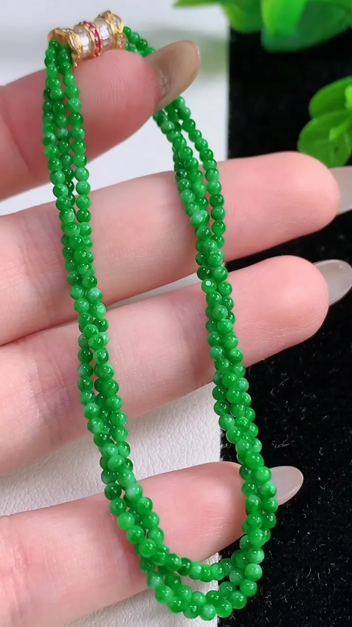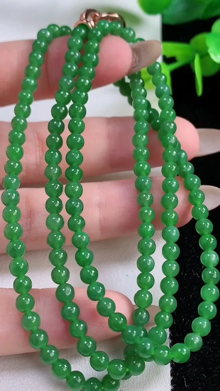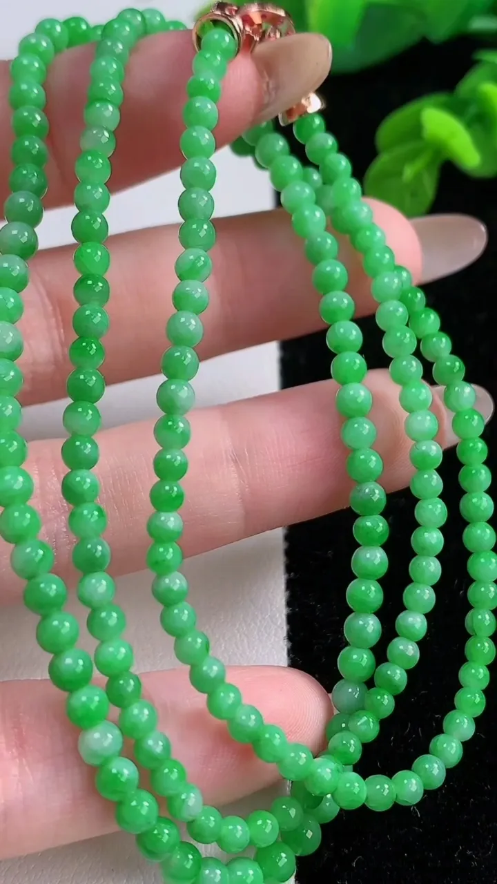 天然A货翡翠小米珠项链,尺寸4-148颗,重:17.76g11月17日 工厂直销收藏佳品,种好水足,