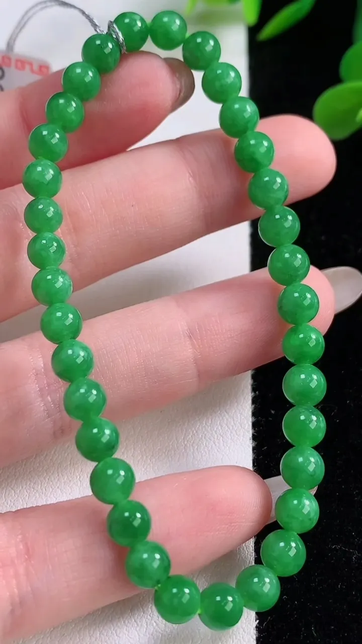 天然A货翡翠圆珠手串,尺寸5.4-34颗,重量:9.79g11月25日 工厂直销收藏佳品,种好水足,
