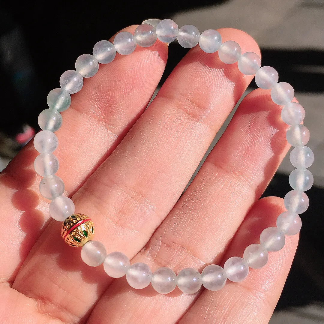 冰种珠子手串,玉质细腻,荧光感超 强,饱满圆润,尽显优雅气质,