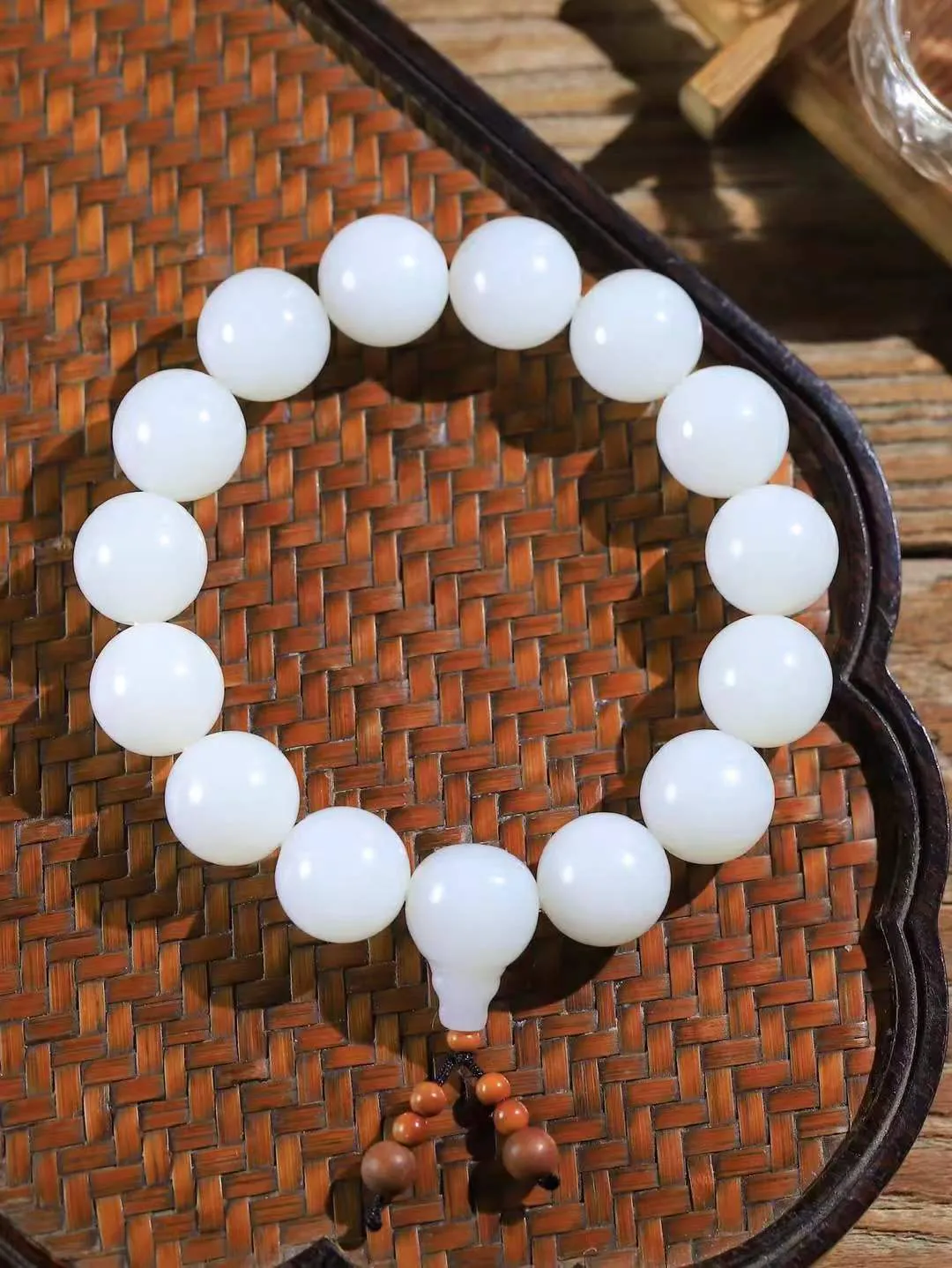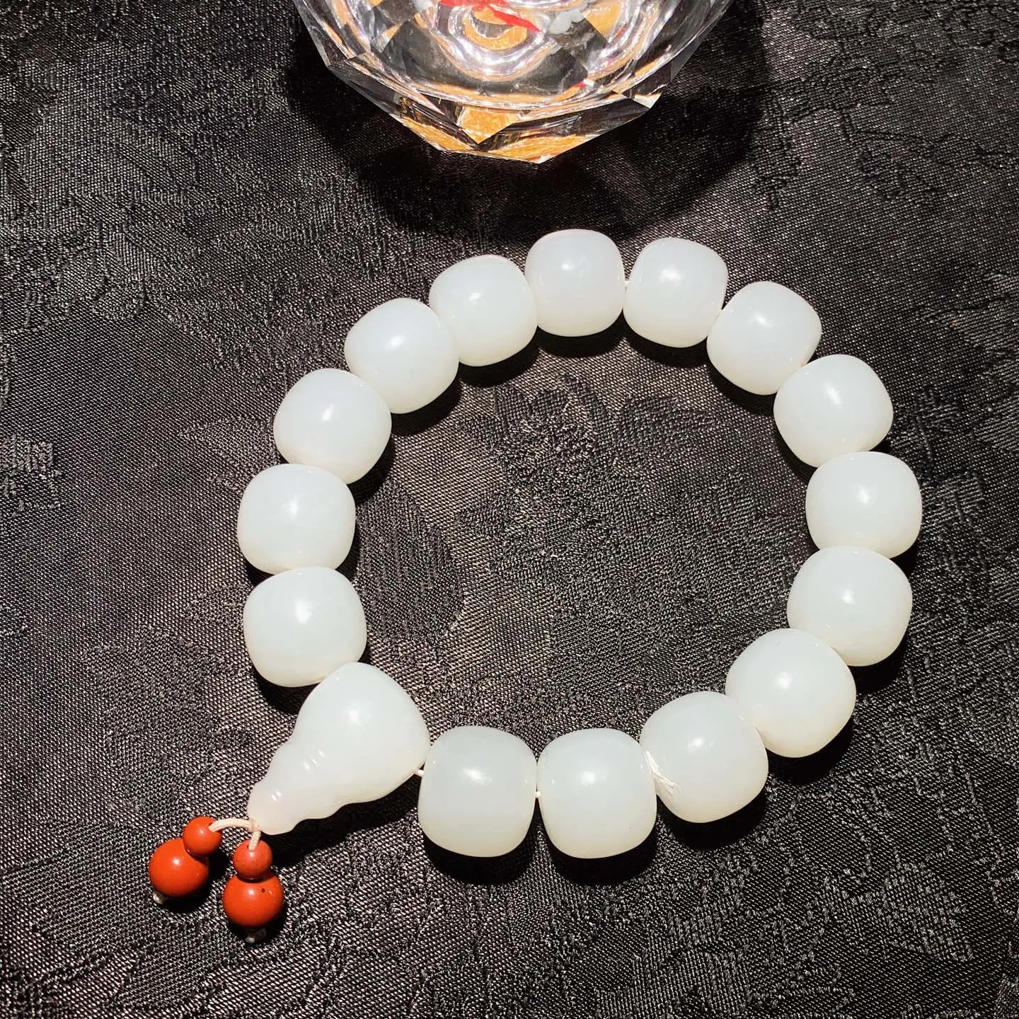 1和田玉白玉羊脂白老型珠手串。单颗尺寸13/14!玉质细腻油润。手推出油。佩戴高端典雅。lt2511