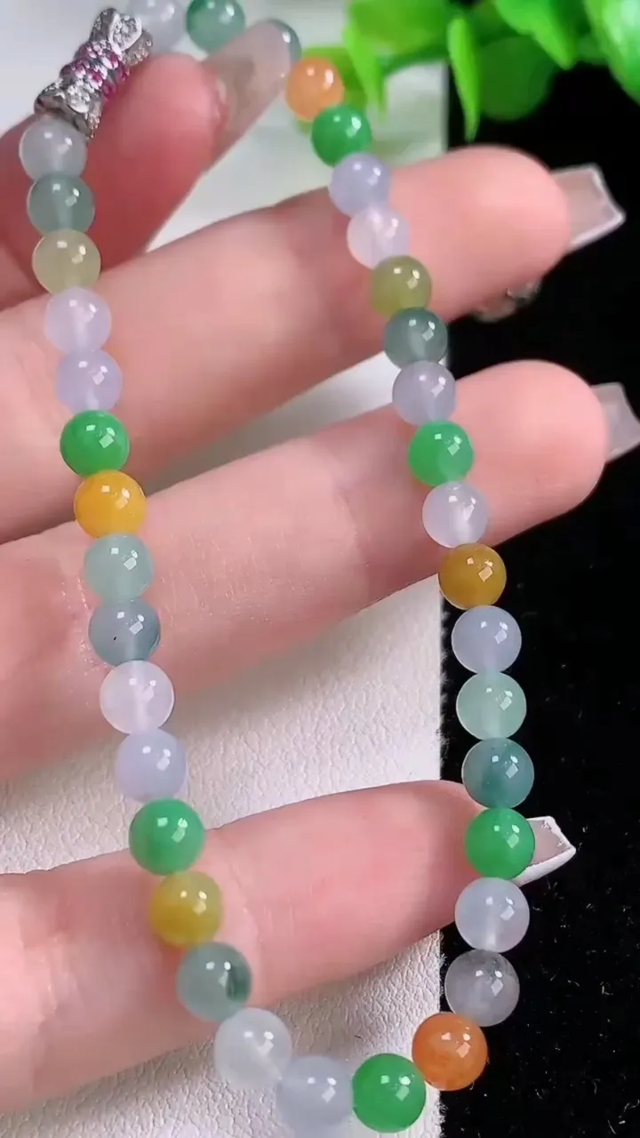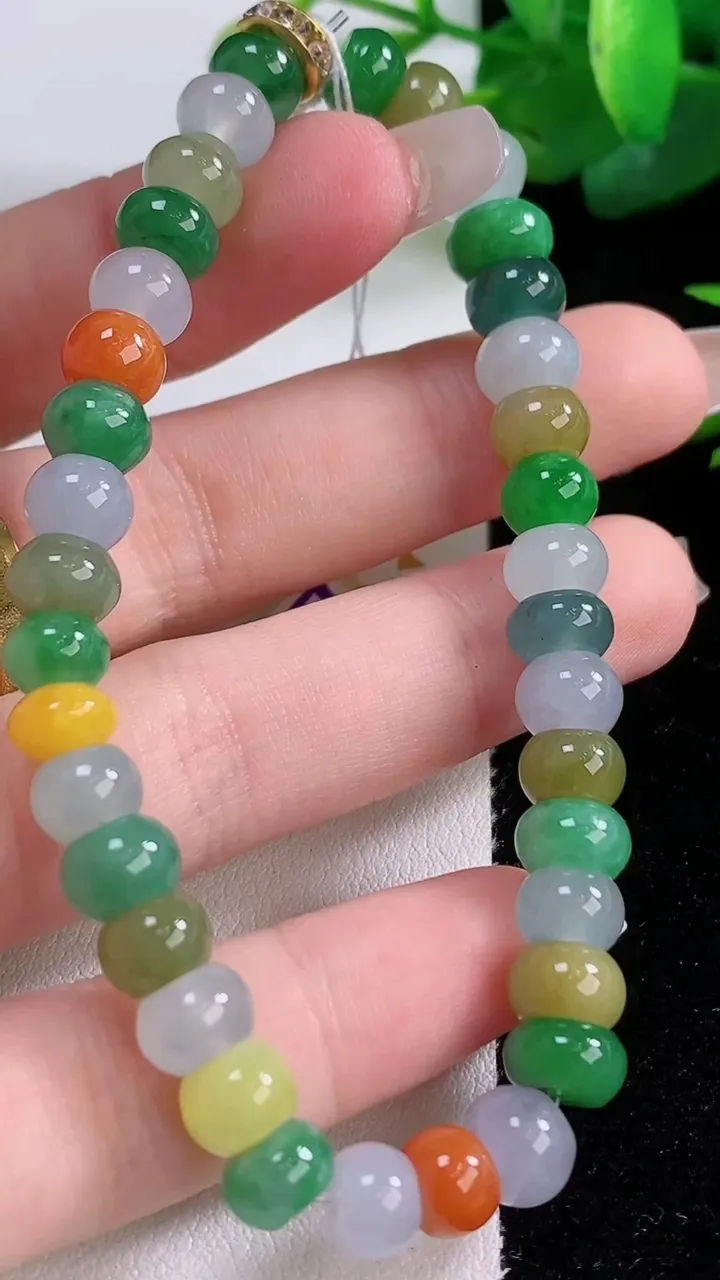 天然A货翡翠四彩算盘珠手串,尺寸7-5-34颗,重量:19.82g12月5日 工厂直销收藏佳品,种好