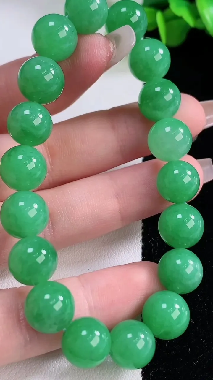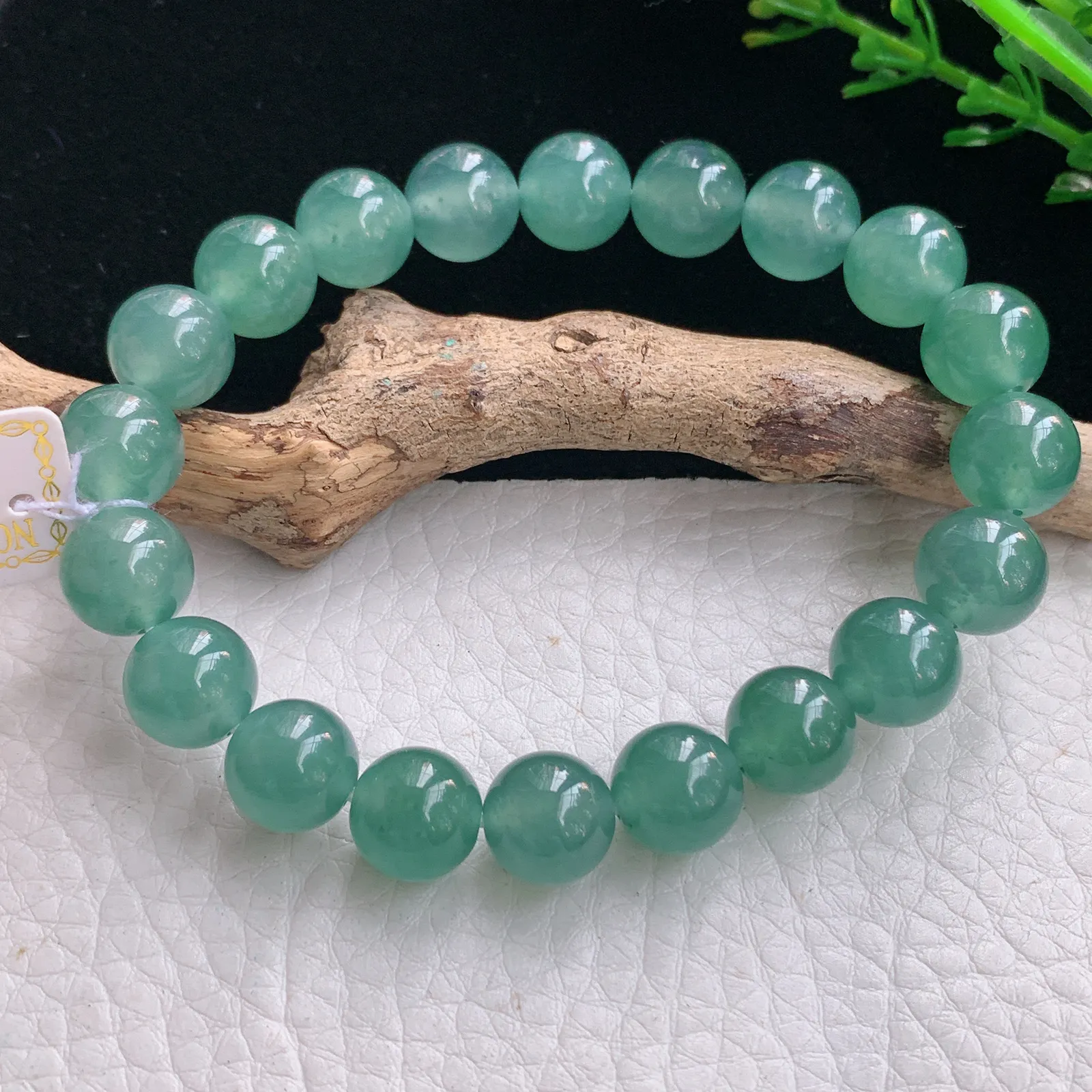 ss自然光9.8mm天然缅甸翡翠a货冰油湖水绿圆珠玉手链 玉手串