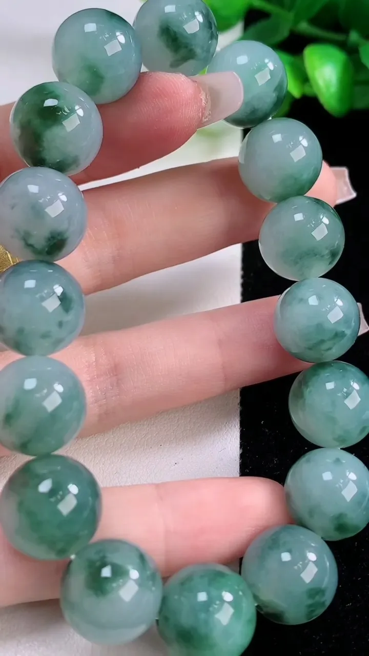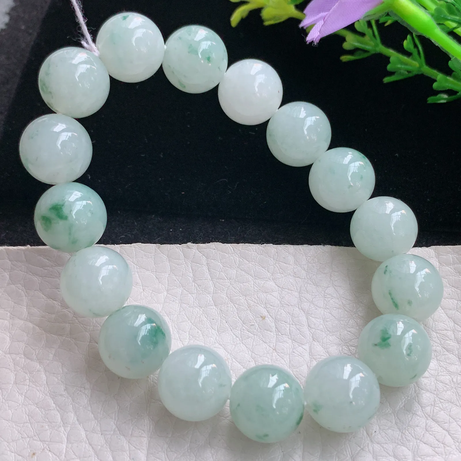 ss自然光12.6mm天然缅甸翡翠a货冰飘花圆珠玉手链 玉手串
