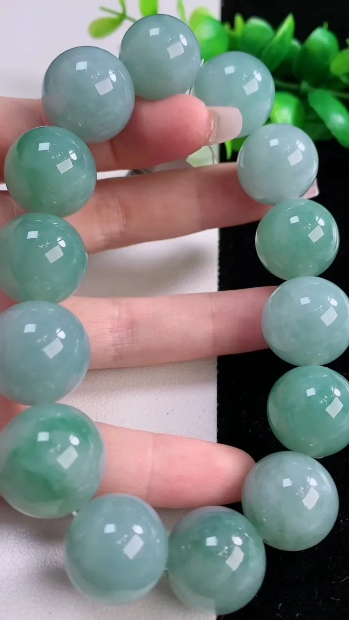 天然A货翡翠圆珠手串18颗,尺寸10.4,重量:34.55g12月5日 工厂直销收藏佳品,种好水足,