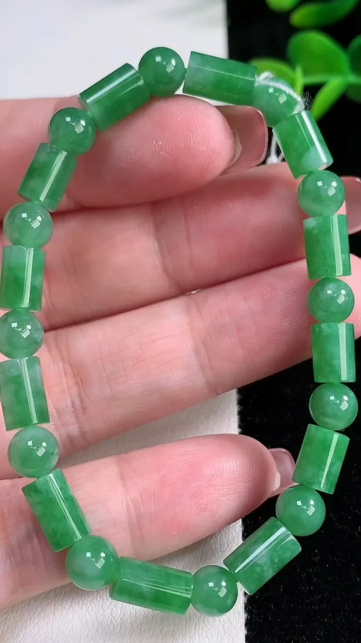 天然A货翡翠算盘珠手串,尺寸8.2-6-30颗,重量:23.45g12月17日 工厂直销收藏佳品,种