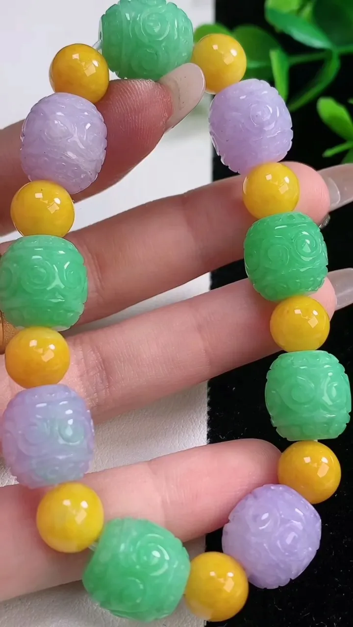 天然A货翡翠双彩雕花路路通手串,尺寸13-13-18颗,重量:49.65g12月28日 工厂直销收藏