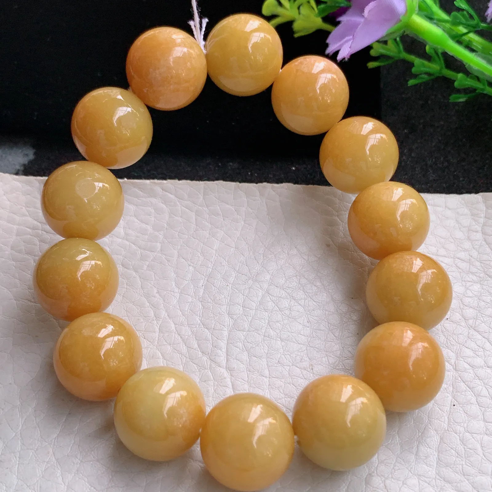 ss自然光16.3mm天然缅甸翡翠a货大颗粒黄翡水润圆珠玉手链 玉手串