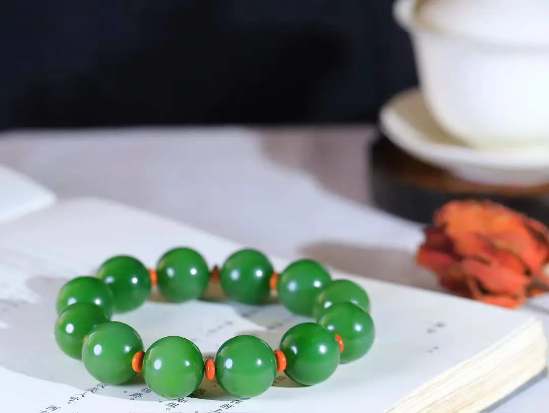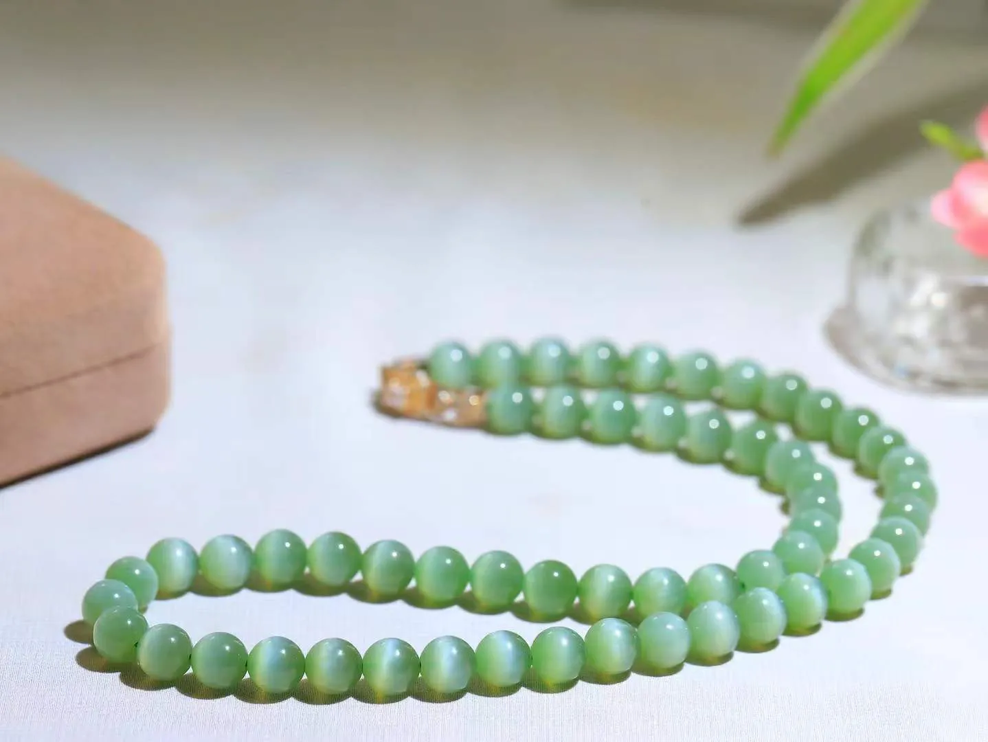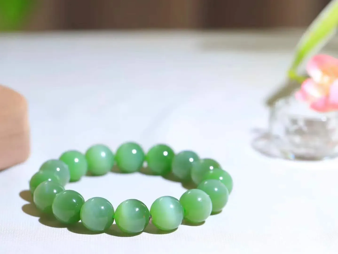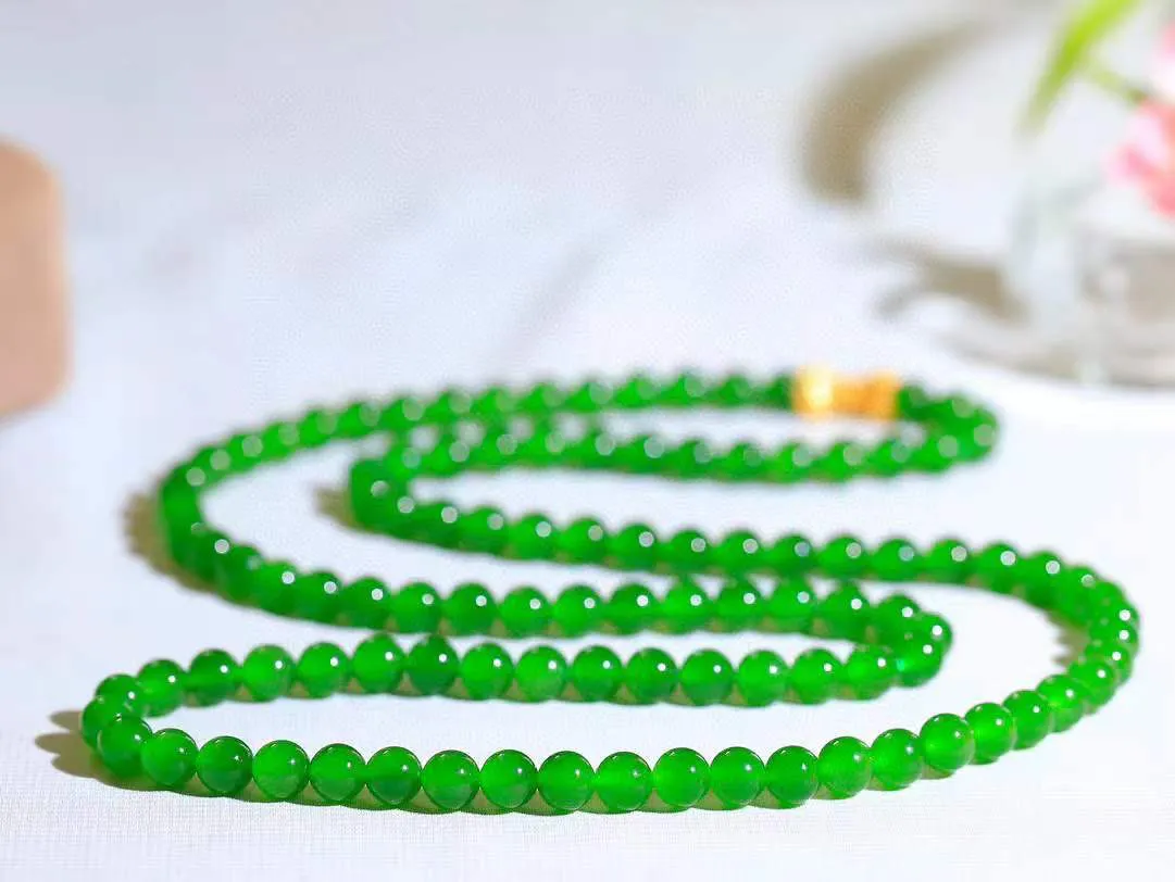 缅甸天然翡翠A货,卡6冰种浓绿圆珠手串手链,尺寸:6mm/28颗,长度175mm,重量:10.11g