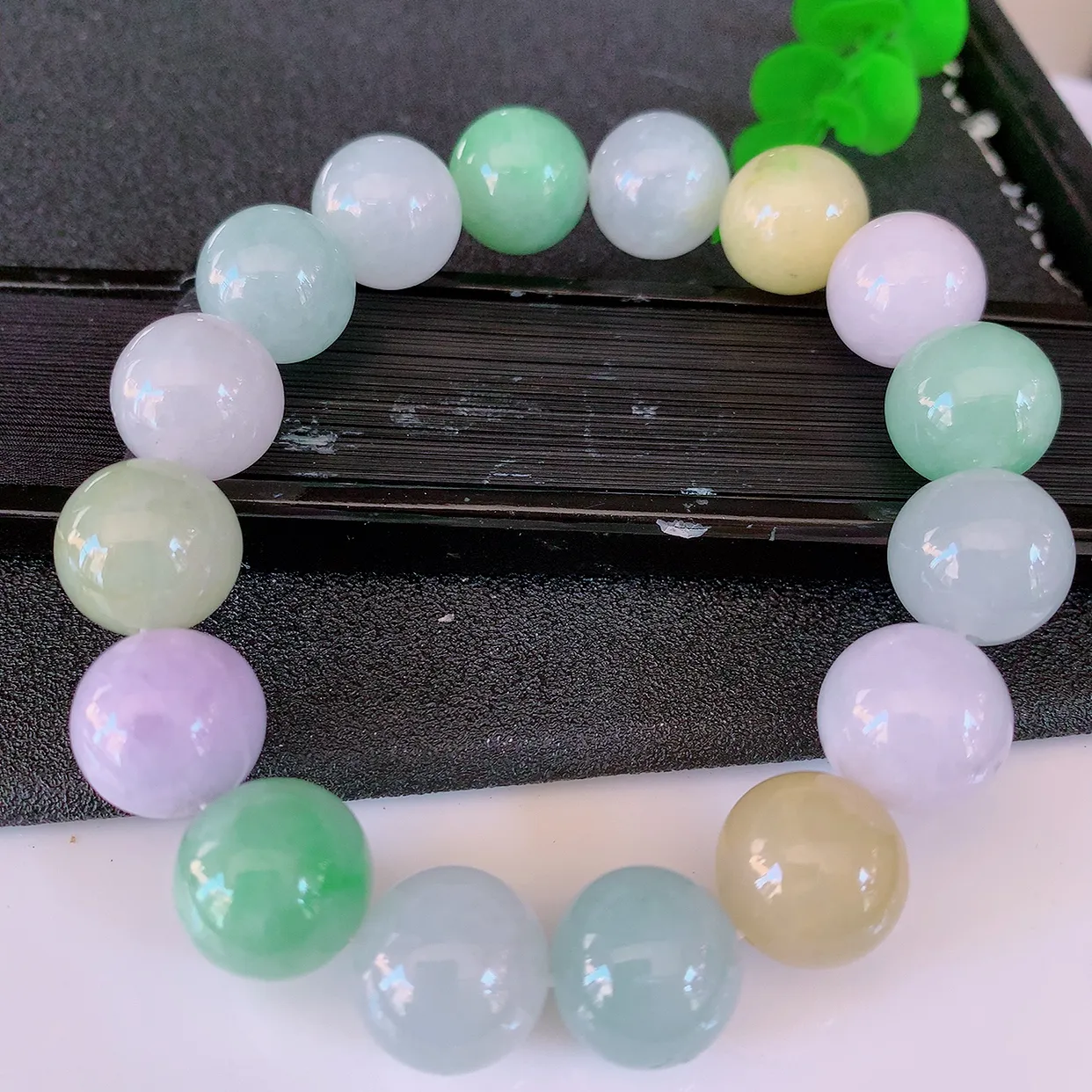 自然光实拍,大颗冰润多宝翡翠手链,多彩翡翠手串,颜色丰富,料子细腻,高档大气,自戴送礼佳品!#46.