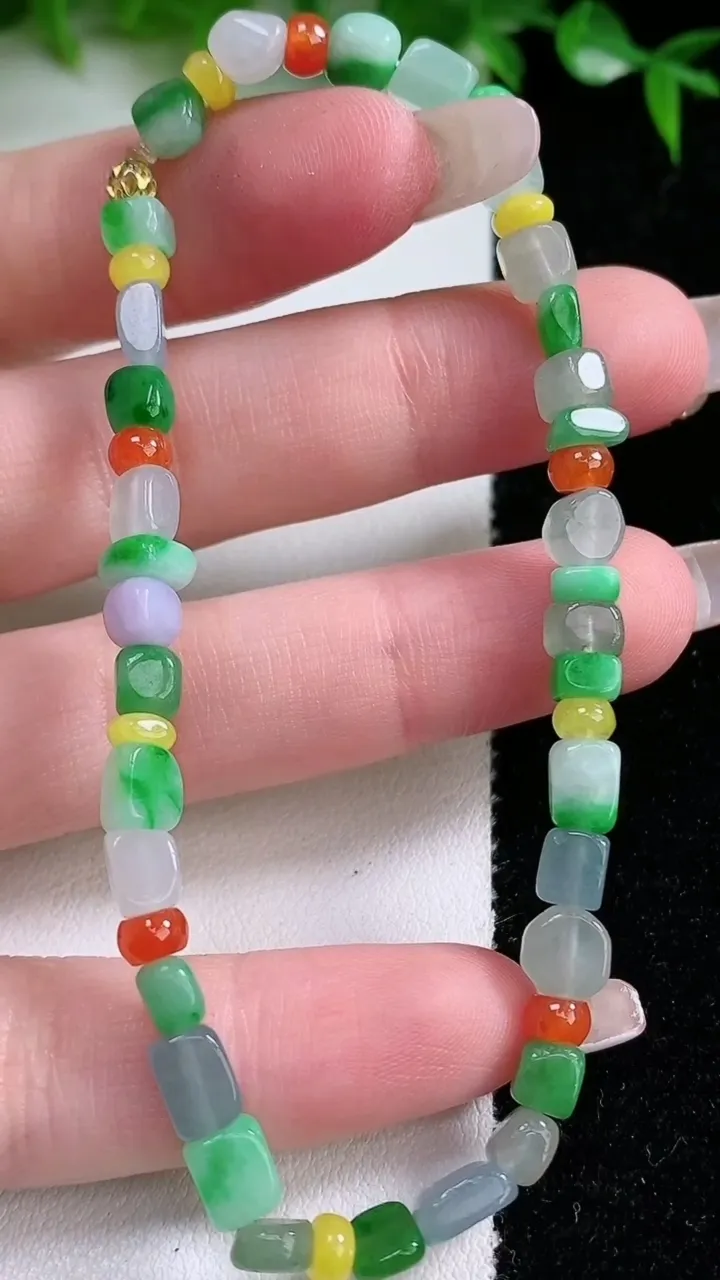 天然A货翡翠三彩原石手串,尺寸5.5-4.5-3.7-44颗,重量:9.06g1月24日 工厂直销收