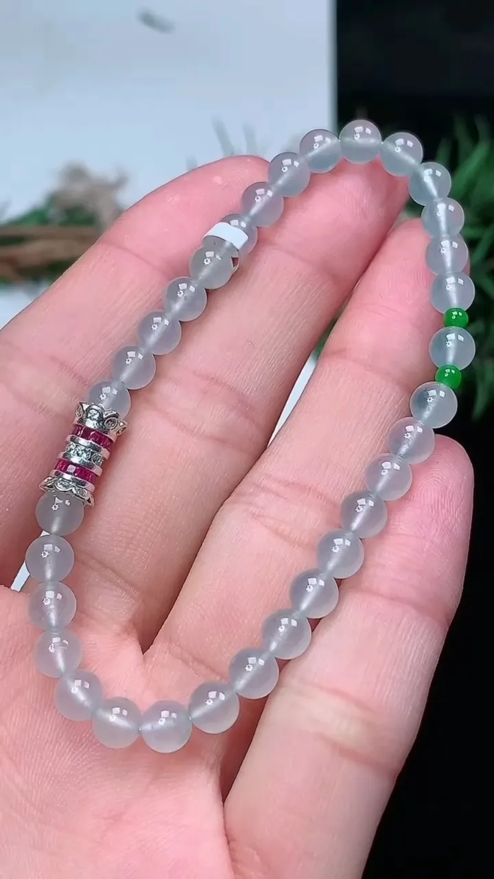 天然A货翡翠白冰圆珠手串,尺寸4.9-34颗,重量:8.10g1月25日 工厂直销收藏佳品,种好水足