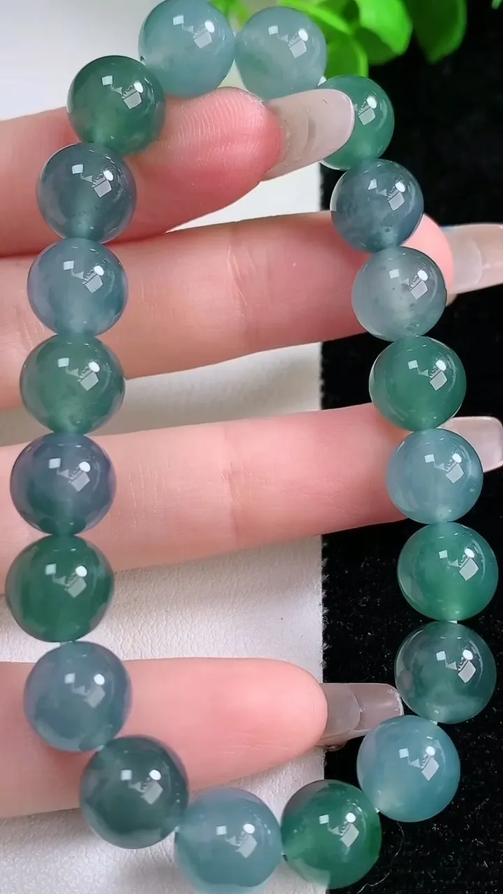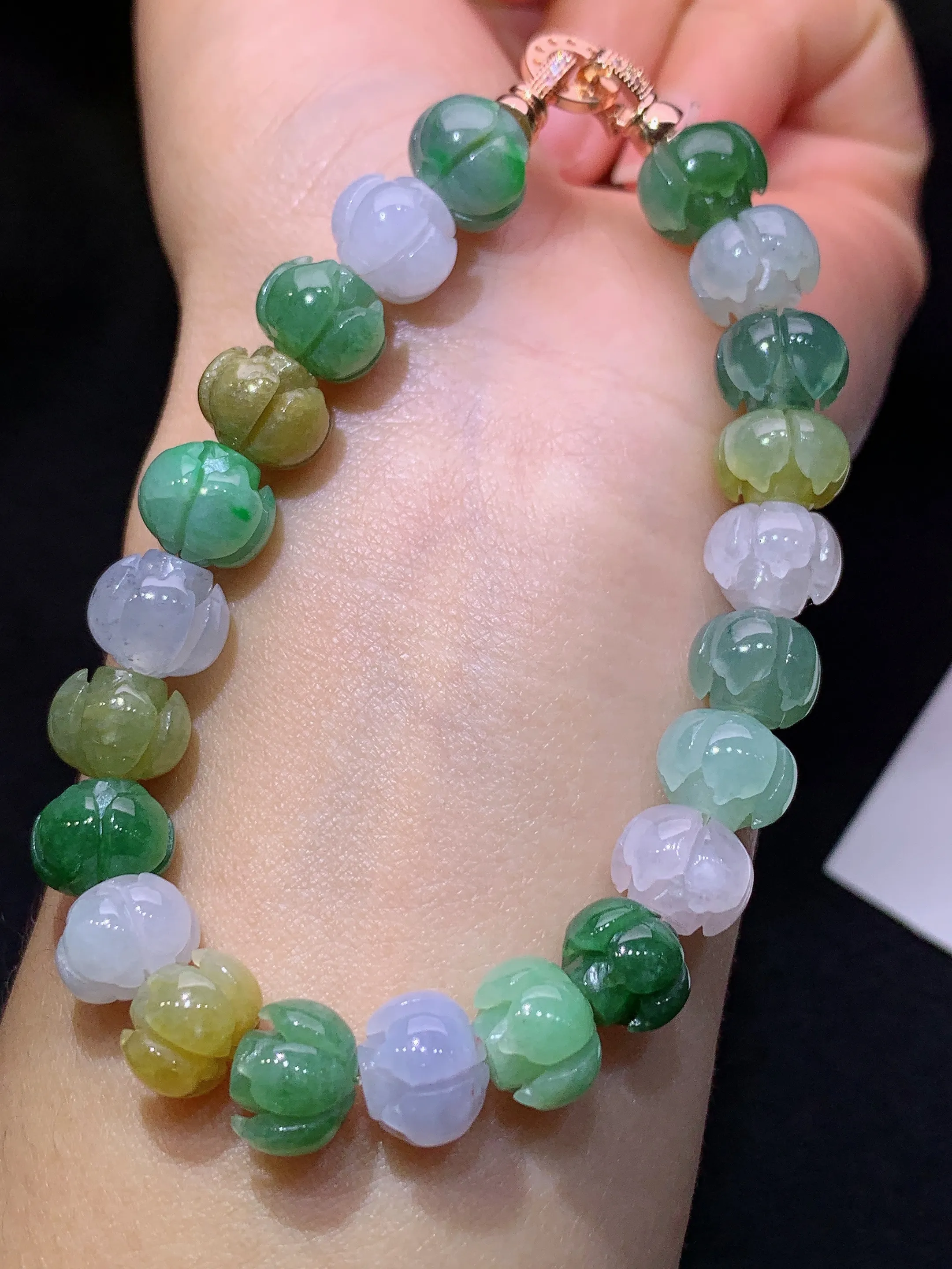 冰种多彩莲花手串,手链,冰润鲜艳,玉质细腻,种水足 整体尺寸10.2*8.3
