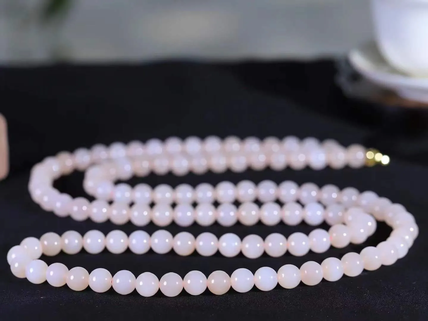 【珠圆玉润.项链】 精品和田玉藕粉珠圆玉润项链 玉质细腻油润 饱满光滑 质朴无华,悠远简单,人心