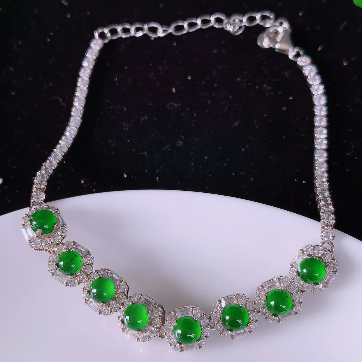 冰透满绿翡翠925银镶嵌手链,自然光实拍,翠色灵动,颜色漂亮,种老水足,品相佳,佩戴佳品!#97.2