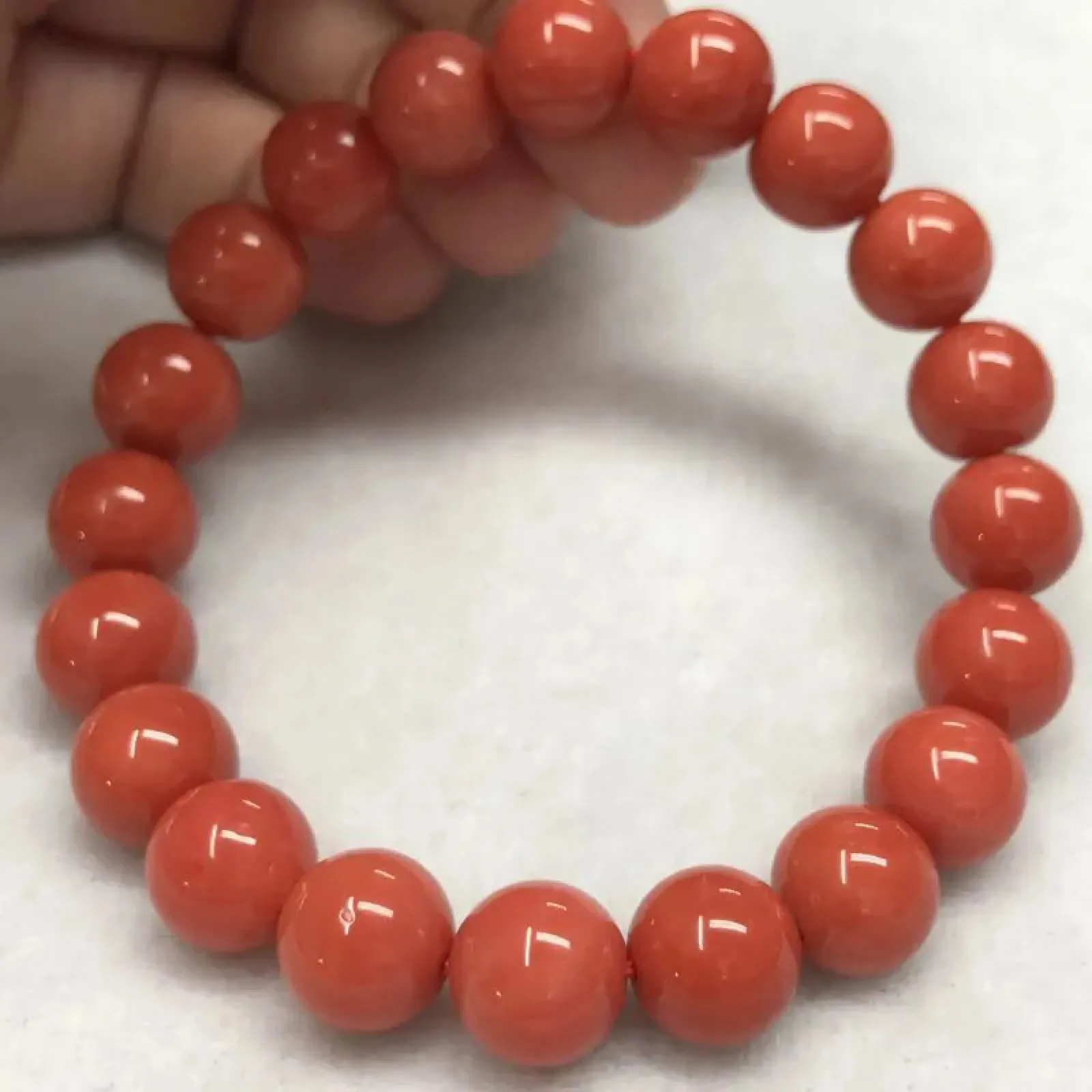 【天然橘红珊瑚10mm大圆珠手串】收藏爱好者提供!意大利产地,沙丁材料,橘红色,光泽柔润透亮,直径约
