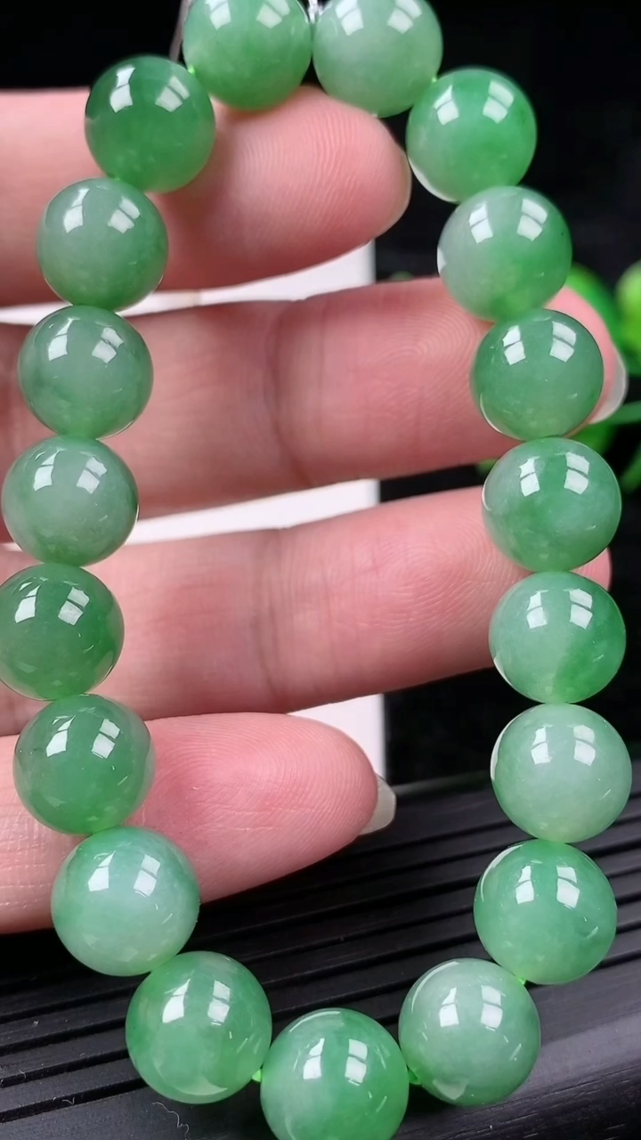 天然A货翡翠圆珠手串,尺寸10,重量:32.53g3月16日 工厂直销收藏佳品,种好水足,色泽均匀,