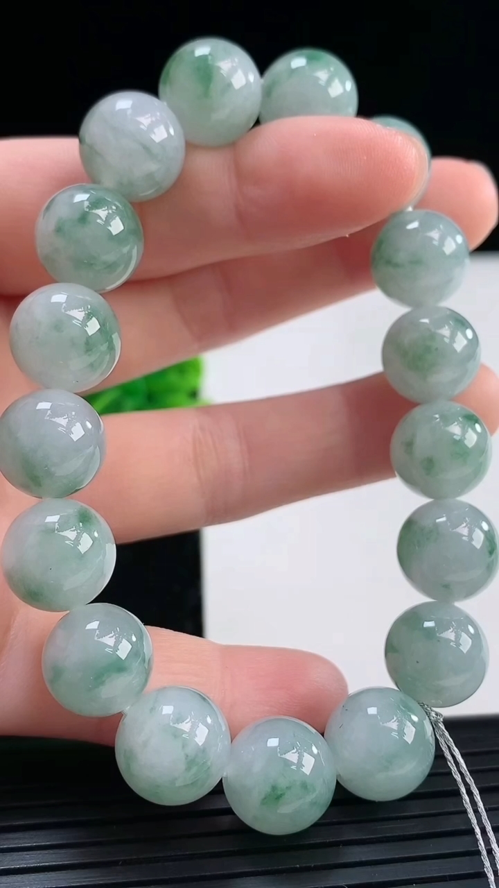天然A货翡翠飘花圆珠手串尺寸11.5-17颗重量:45.22g3月31日 工厂直销收藏佳品,种好水足